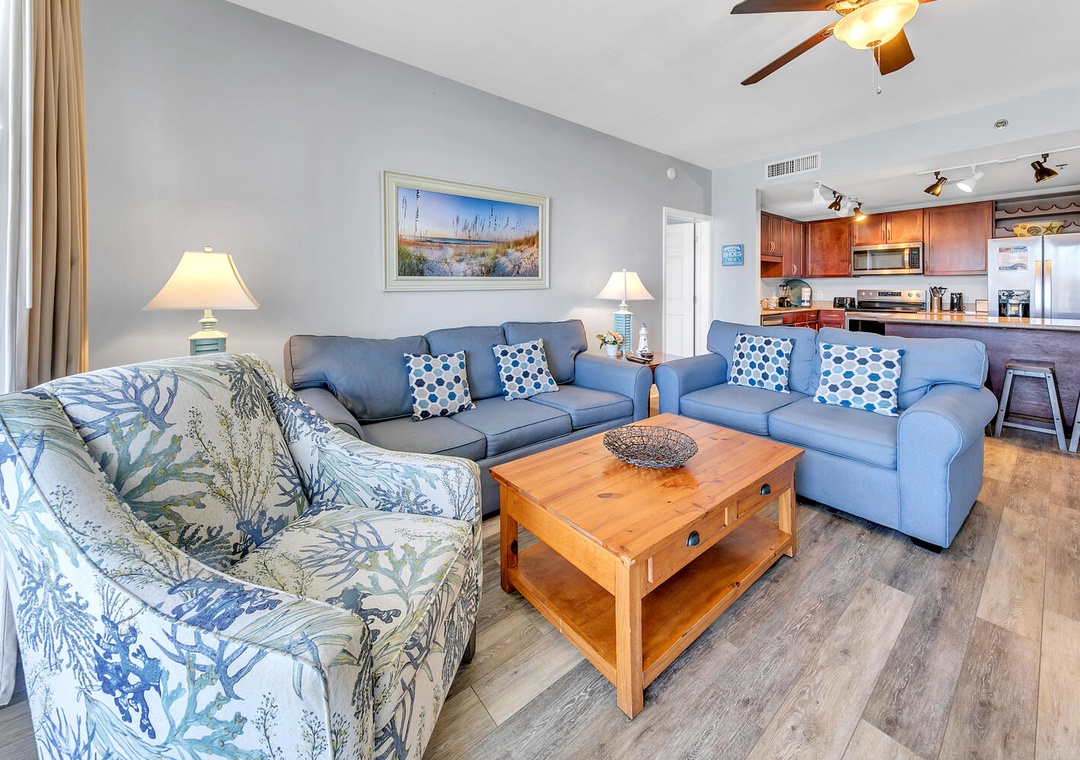 Enjoy spectacular Gulf views at Laketown Wharf 806 in Panama City Beach! Laketown Wharf is an incredible destination with abundant amenities that appeal to all ages. This 2BR+Bunk/2BA condo has a king bed in the master bedroom, a king in the guest bedroom, twin over twin bunk beds in the hall alcove, and a new sleeper sofa. This lovely unit sleeps up to 8 guests comfortably. Wake up early to enjoy the sunrise with a cup of coffee on your private balcony. Relax and unwind in the spacious living room and enjoy your favorite movie on the flat-screen TV. The Laketown Wharf 806 is perfect for your entire family and will have you coming back year after year!