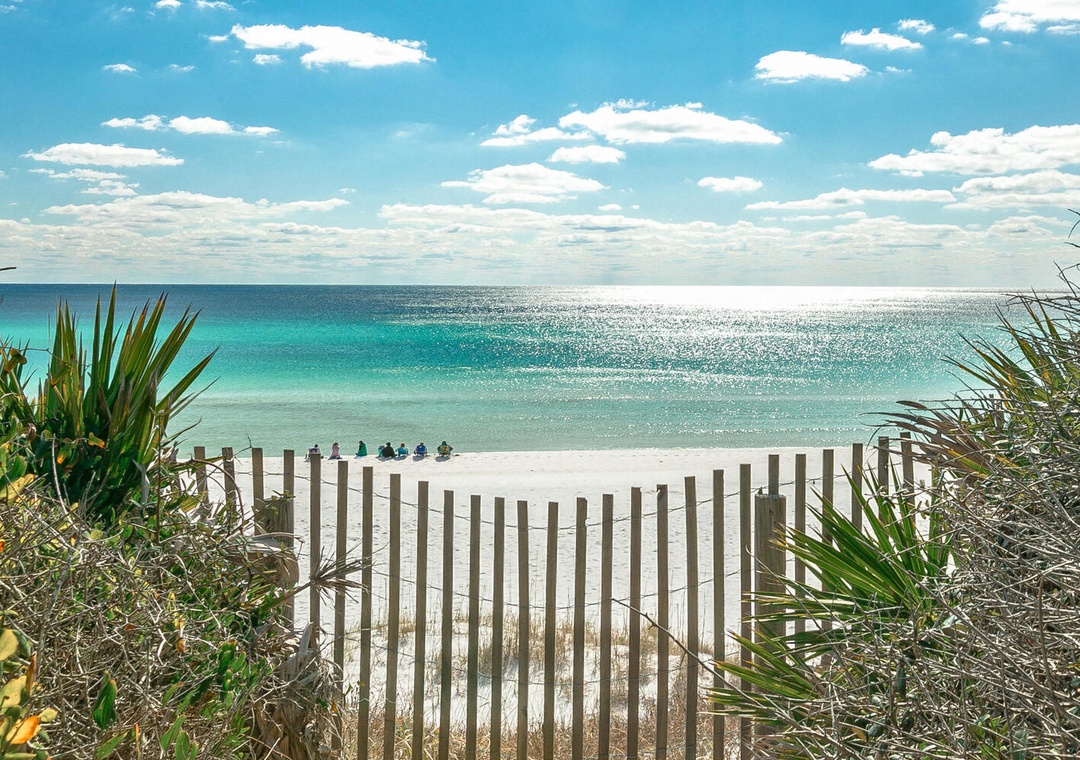 WaterColor, Florida is a beach town with rich landscaping and incredible pocket parks that blend perfectly into Northwest Florida’s natural scrub oak and palmetto. WaterColor borders the Gulf of Mexico and Western Lake, South Walton’s largest coastal dune lake. Great care was taken to preserve the natural beauty of Western Lake. Gravel nature trails twist and wind through the oak scrub and foot bridges criss-cross Western Lake. On the North side of Scenic 30-A, you will find a large butterfly garden that leads to an outdoor amphitheater and boathouse. At the boathouse, try stand up paddle-boarding, kayaking, or canoeing over towards the shores of Grayton Beach State Park. On the South side of Scenic 30-A is the WaterColor Beach Club and along with the home of the James Beard award-winning restaurant, Fish Out of Water. Community access to the Gulf of Mexico is through a beach boardwalk adjacent to the Beach Club. WaterColor Florida is a fabulous spot for your next beach vacation!