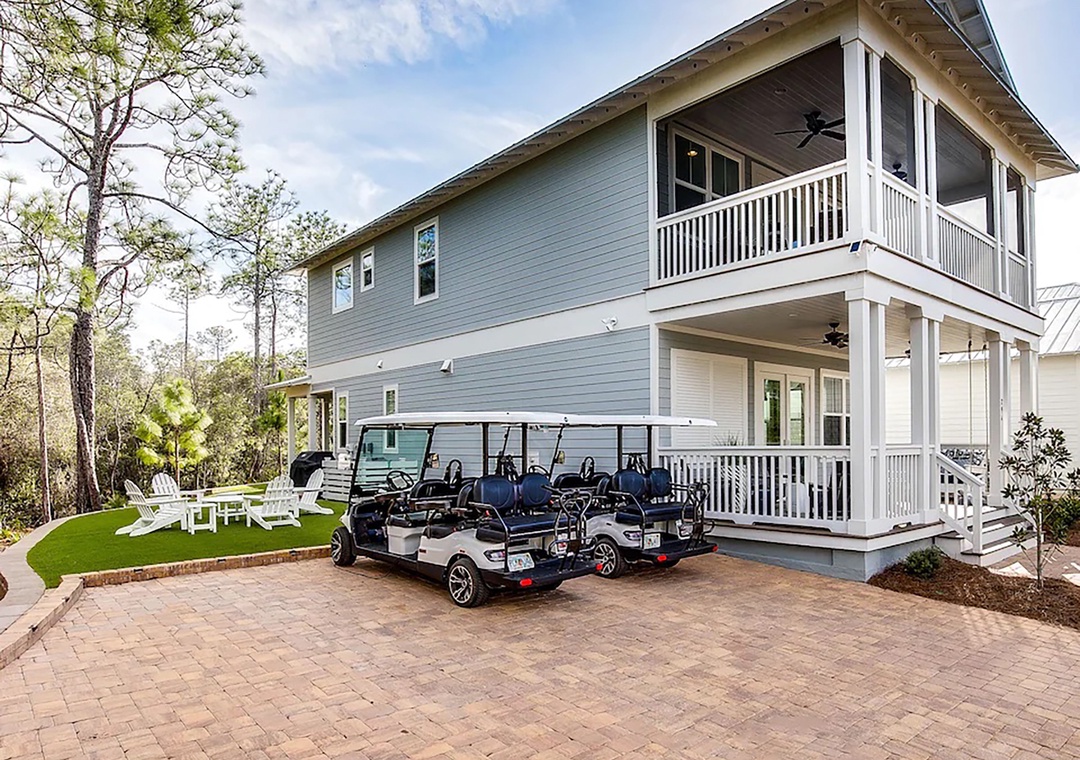 We were extremely pleased with the house and the overall experience. The house is fabulous/luxurious with all of the amenities you could possibly ask for!! The house has high ceilings, tall doorways, modern dark wood flooring, a spacious kitchen and living room, two large porches (one is screened-in), a beautiful upstairs master suite, everything needed to cook/eat in the kitchen, a PlayStation area that our son and our daughter’s boyfriend really enjoyed, everything needed to take to the beach including coolers/chairs/a tent. The house also comes with six bikes and a street legal 6-person golf cart, which we made use of frequently. We especially enjoyed the fact that the house is located in a quiet/private/high-end neighborhood that is very close to the local Publix (which had great food and that we frequented regularly). We made use of both our rental SUV and golf cart to enjoy the beautiful scenery during the day and the local restaurants/bars at night. We enjoyed our time at Shades (sports bar) and Bayou Bill’s (king crab/sushi) to name a few. This was such a special and memorable vacation for us. We felt like we were treated like kings (and queens). If you’r looking for a place to stay near Santa Rosa beach, this is it.- Reviewed On: 8/21/2023