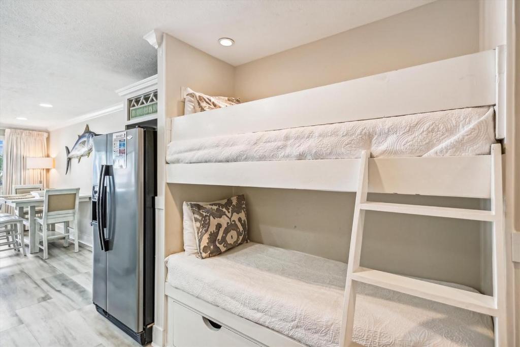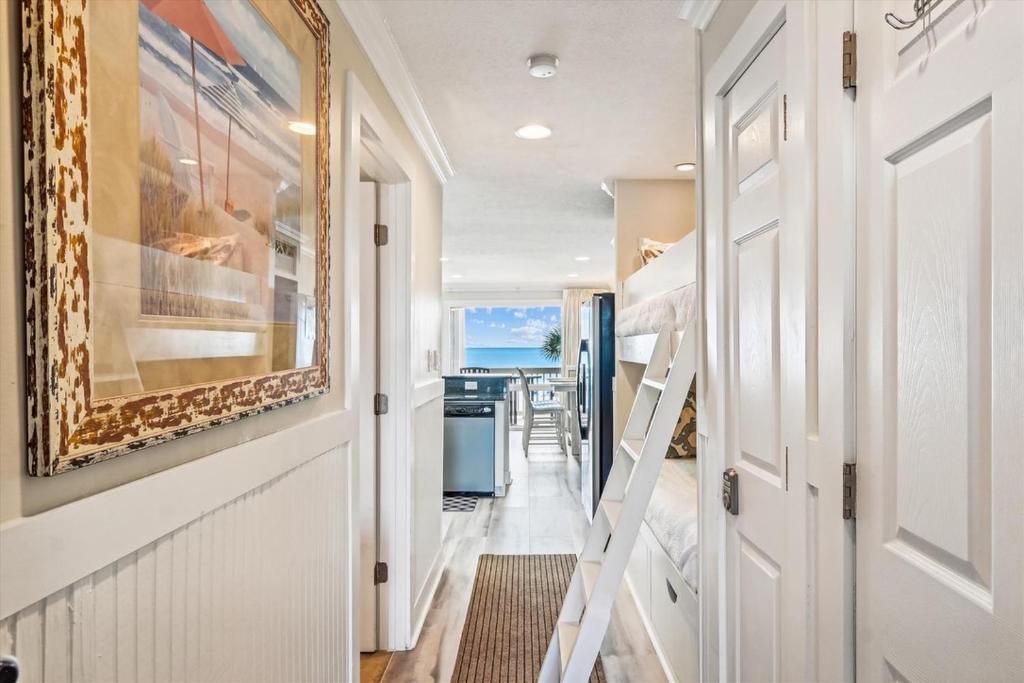 Welcome to Latitude 29 #17, your perfect beach getaway! This inviting 1-bedroom, 2-bath condo with hallway bunks offers beautiful views of both the Gulf and the pool from its convenient second-floor location—just a short walk to the sugar-white sand and sparkling water. Designed for comfort and relaxation, the condo features a king bed in the master bedroom, twin bunk beds in the hallway, and sleeper sofas in the living area, comfortably accommodating up to six guests. The well-equipped kitchen has everything you need to prepare breakfast, lunch, or dinner for your group, whether you're cooking a quick beach-day meal or enjoying a relaxing evening in. Start your mornings with a cup of coffee on the private balcony while taking in the coastal views and unwind after a day in the sun at this charming beach retreat at Latitude 29.