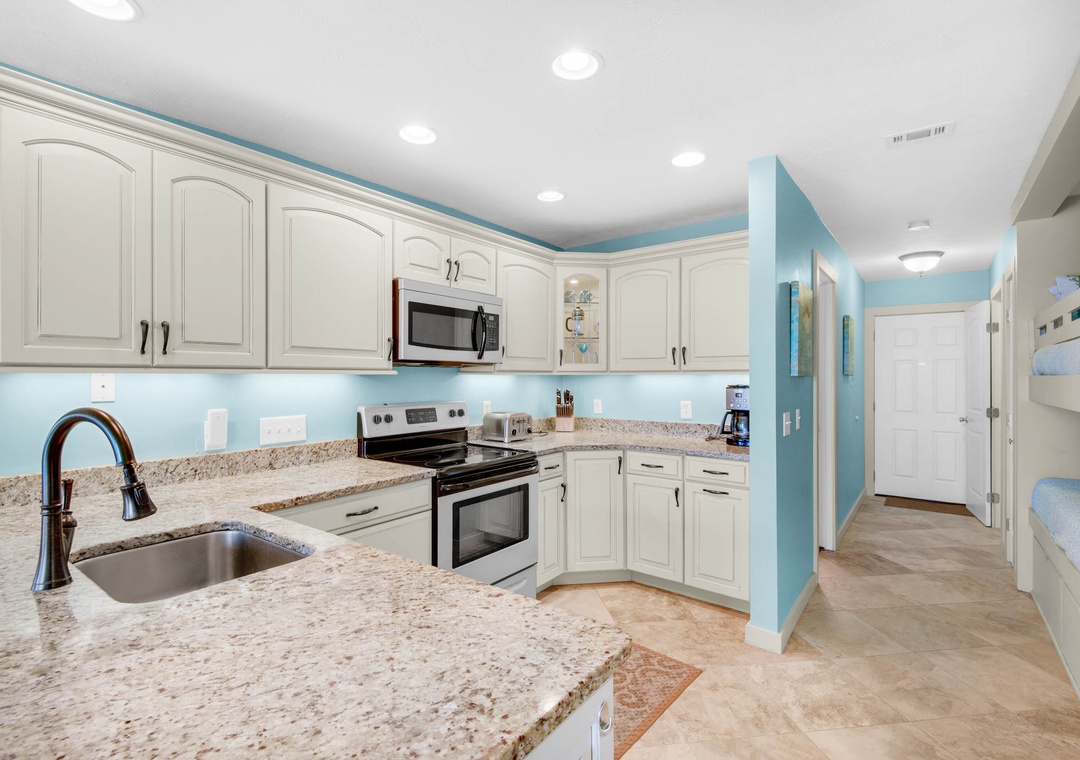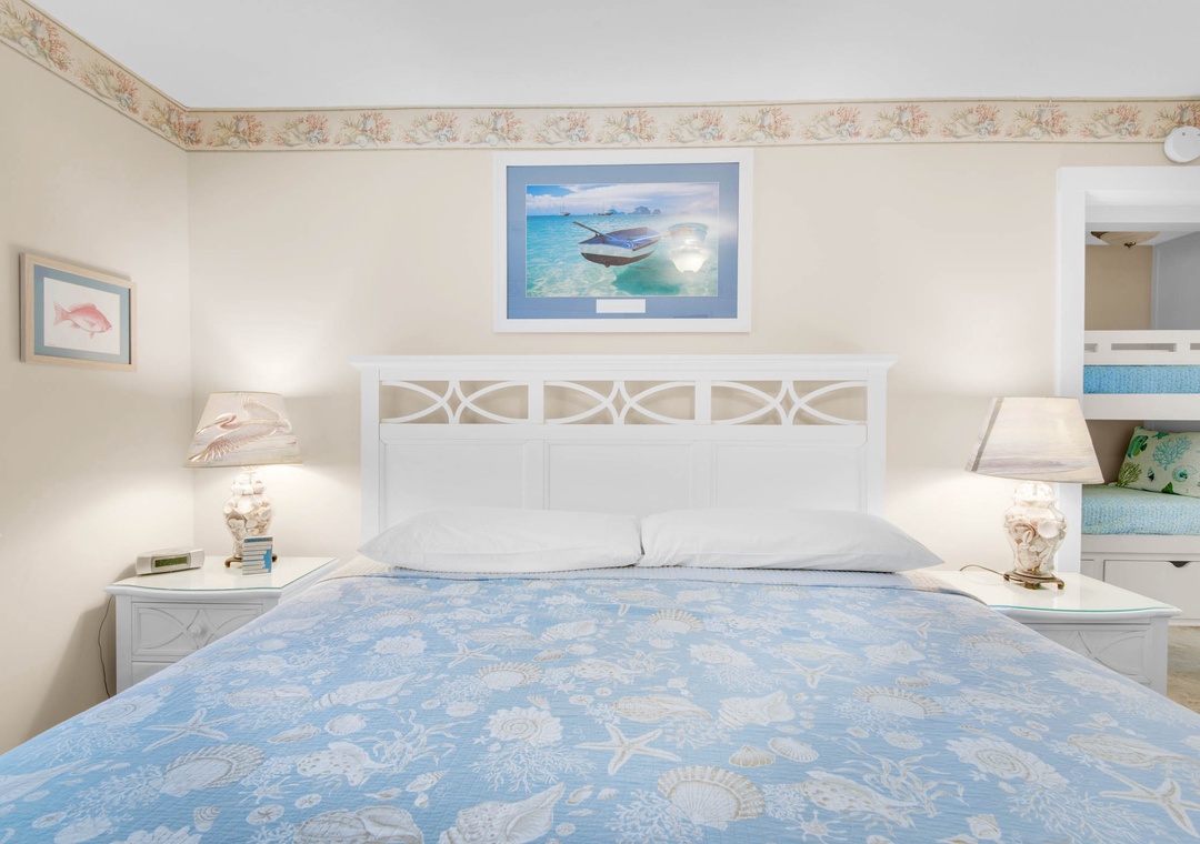 Super cute condo! Very quiet and peaceful. Short walk to the beach. Main bedroom has a very dark shade for some good sleep. Hallway has cute small bunks for kiddos. Large nice kitchen and guest bathroom shower is updated.- Reviewed On: 6/15/2022