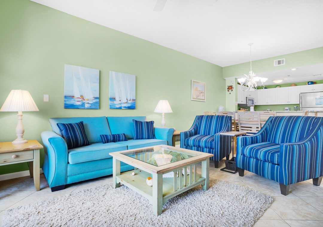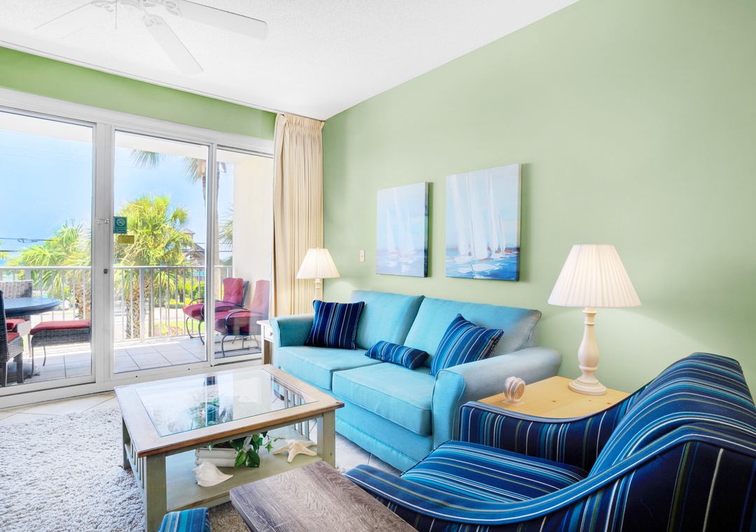Step into paradise at Leeward Key 204! This second-floor Miramar Beach condo offers breathtaking tropical views that may tempt you to call it your permanent home. With its tropical decor and cozy furnishings, you'll feel right at home in this spacious 2BR/2BA open floor plan. The fully equipped kitchen boasts granite countertops and stainless-steel appliances, perfect for preparing delicious meals. As one of the best two-bedroom floor plans in Leeward Key, this corner condo features a king bed in the master bedroom, two twin beds in the guest bedroom, and a queen sleeper sofa in the living room, comfortably accommodating up to 6 guests. Conveniently located next to Kenny D's and across the street from Captain Dave's on the Gulf, Leeward Key 204 is the perfect vacation destination for your dream beach getaway!