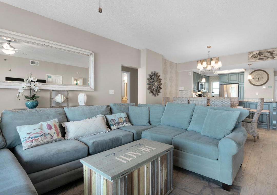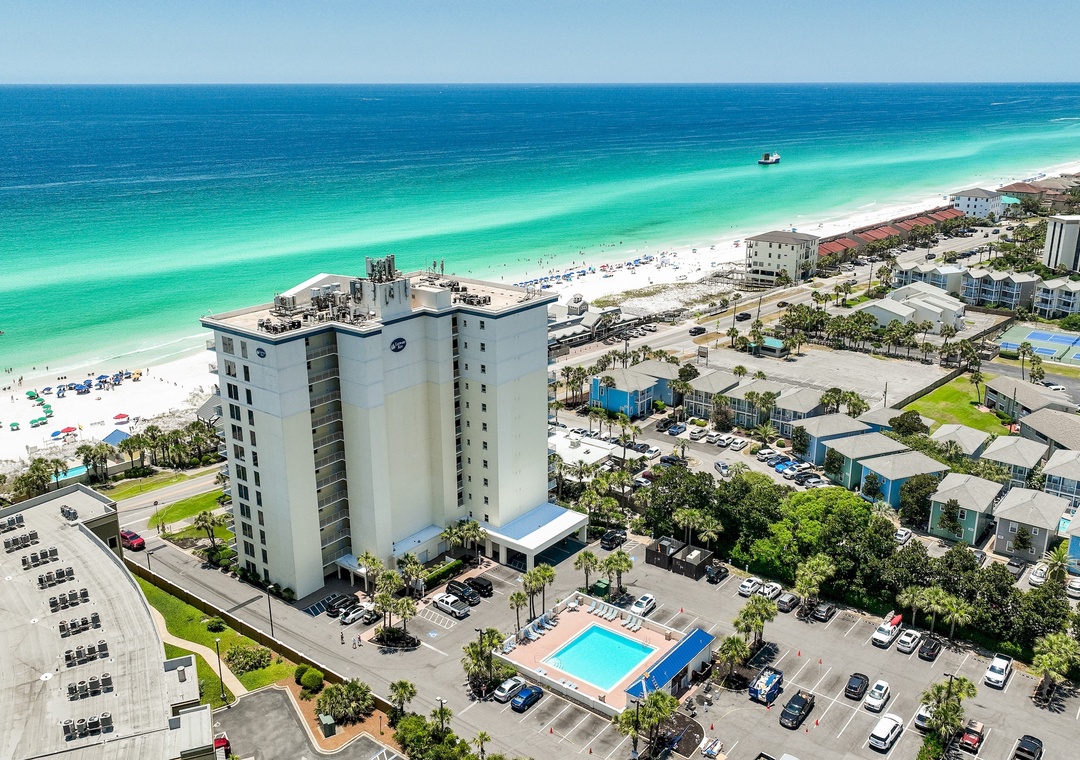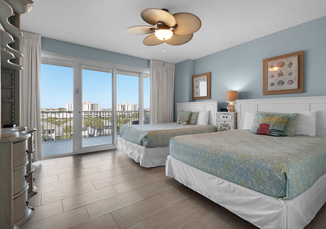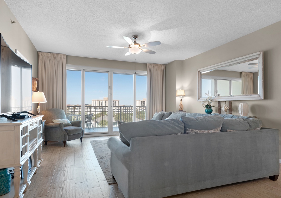 Welcome to Leeward Key 501! The panoramic views from this 5th story Destin condo are so stunning - you may be tempted to make this luxurious Leeward Key vacation condo your permanent home! Nautical decor and high-end furnishings complemented by a spacious four-bedroom, three-bathroom floor plan that sleeps a maximum of 12, will have you saying "bon voyage" to a hectic workweek. You will love the NEW 65" 4K Smart TV in the living room! There is a king bed in the master room, a guest bedroom with a queen bed, a guest bedroom with 2 double beds, and a guest room with a twin-over-twin bunk and full bed. All mattresses were recently upgraded to Sealy luxury hybrid mattresses. Located next door to Kenny D's, and across the street from Captain Dave's, this spot is within a few miles radius to malls, golf courses, and movie theaters - so you can relax or be entertained at any time.