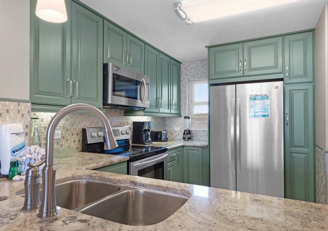 Ron, we appreciate you providing us with some feedback regarding your vacation rental experience at Leeward Key. We are happy to know that you loved this very spacious vacation condo with great views and a well-stocked kitchen and enjoyed the beachside pool and location of this property. Thank you for choosing Real Joy. Please visit again soon.Real Joy staff