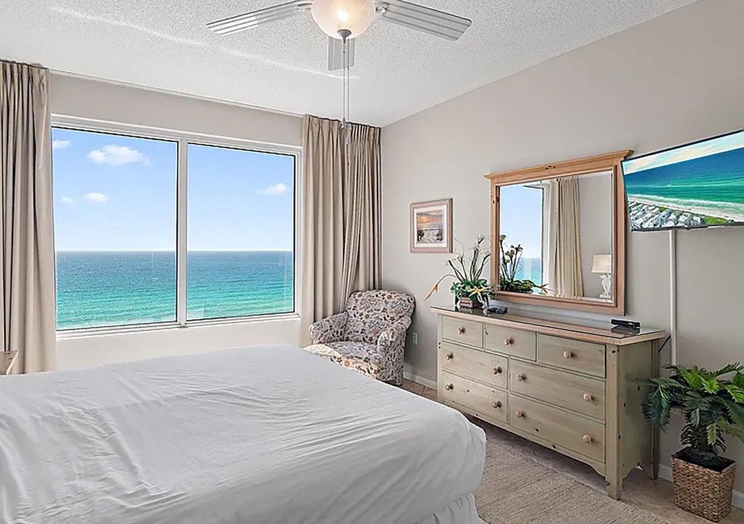 Beautiful view from the living room and master bed. Great size of overall space for my 1 yr old daughter wife and I. Master bath was nice. Nice shower. Great water pressure. Kitchen was what you need. Great location. Great getaway weekend. Easy access to beach and two pools for use.- Reviewed On: 8/12/2024