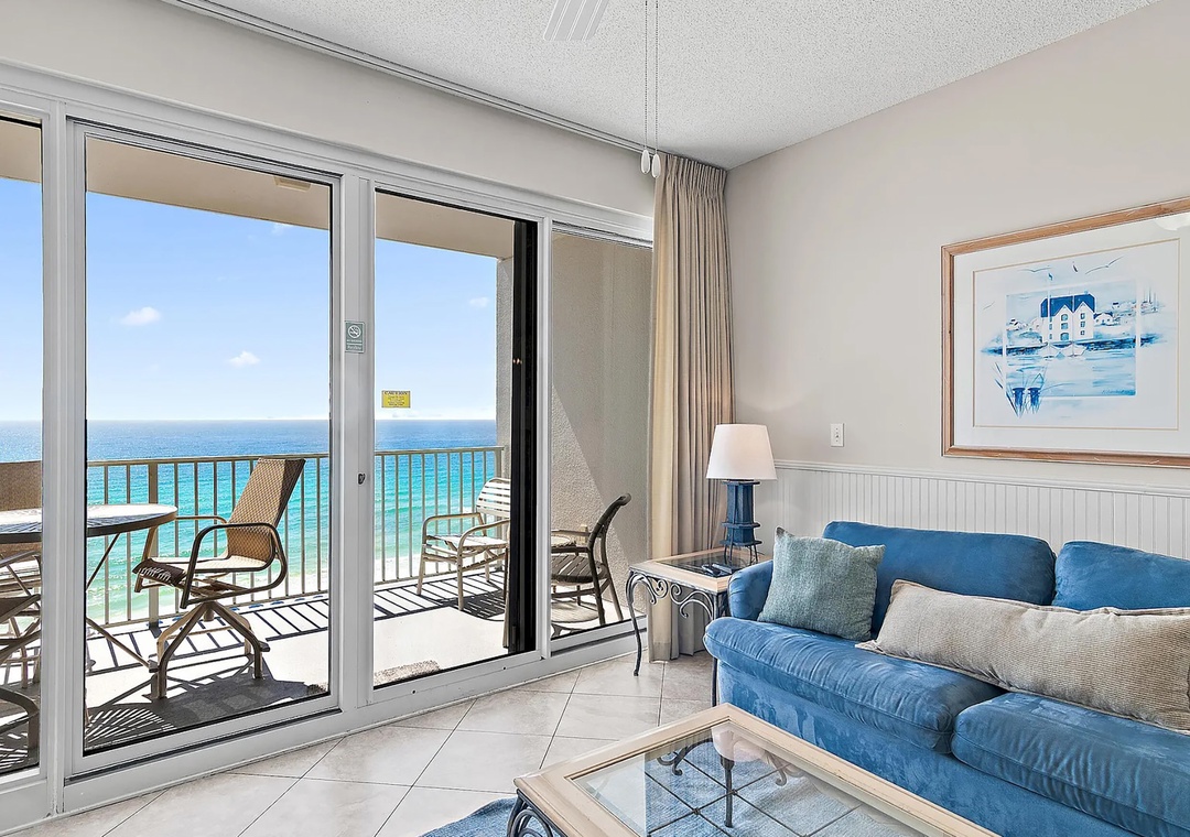 The Gulf Views from this 9th-floor Miramar Beach condo are so stunning - you may be tempted to make this luxurious Leeward Key condo your permanent home! Coastal decor and high-end furnishings are complemented by the spacious 2BR/2BA open floor plan. The fully equipped kitchen features granite counters and unbeatable views of the Gulf. There's a king bed in the master bedroom, a queen bed in the guest room, and a sleeper sofa in the living room, sleeping 6 guests comfortably. Take advantage of your private balcony to sip a beverage and take in the views from the comfort of your condo. Located next door to Kenny D's and across the street from Captain Dave's on the Gulf, Leeward Key 904 is your perfect vacation destination!