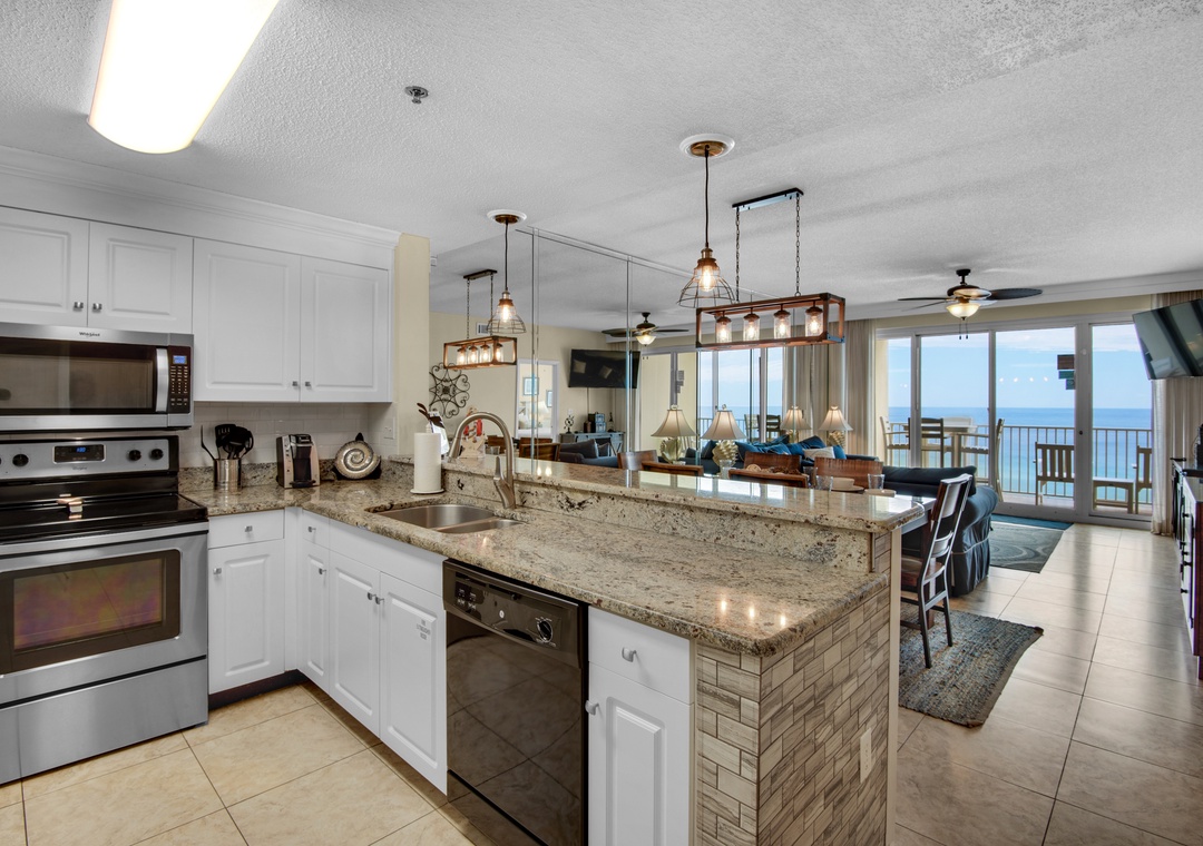 Welcome to Suite Sea-Cret, a two-bedroom two bath condo located in Leeward Key! The views from this 9th story Destin condo are so stunning - you may be tempted to make this luxurious vacation condo your permanent home! Guests will love the nautical decor and high-end furnishings complemented by the spacious, open floor plan with floor-to-ceiling gulf views throughout. The living space is highlighted by a fabulous kitchen boasting granite counters and a fabulous eat-in bar for 4. There is a king bed in the master suite, a queen bed in the guest bedroom, and a sleeper sofa in the living room. Located next door to Kenny D's, and across the street from Captain Dave's, this spot is within a few miles radius to malls, golf courses, and movie theaters - so you can relax or be entertained at any time. Come make Suite Sea-Cret your go-to vacation destination!