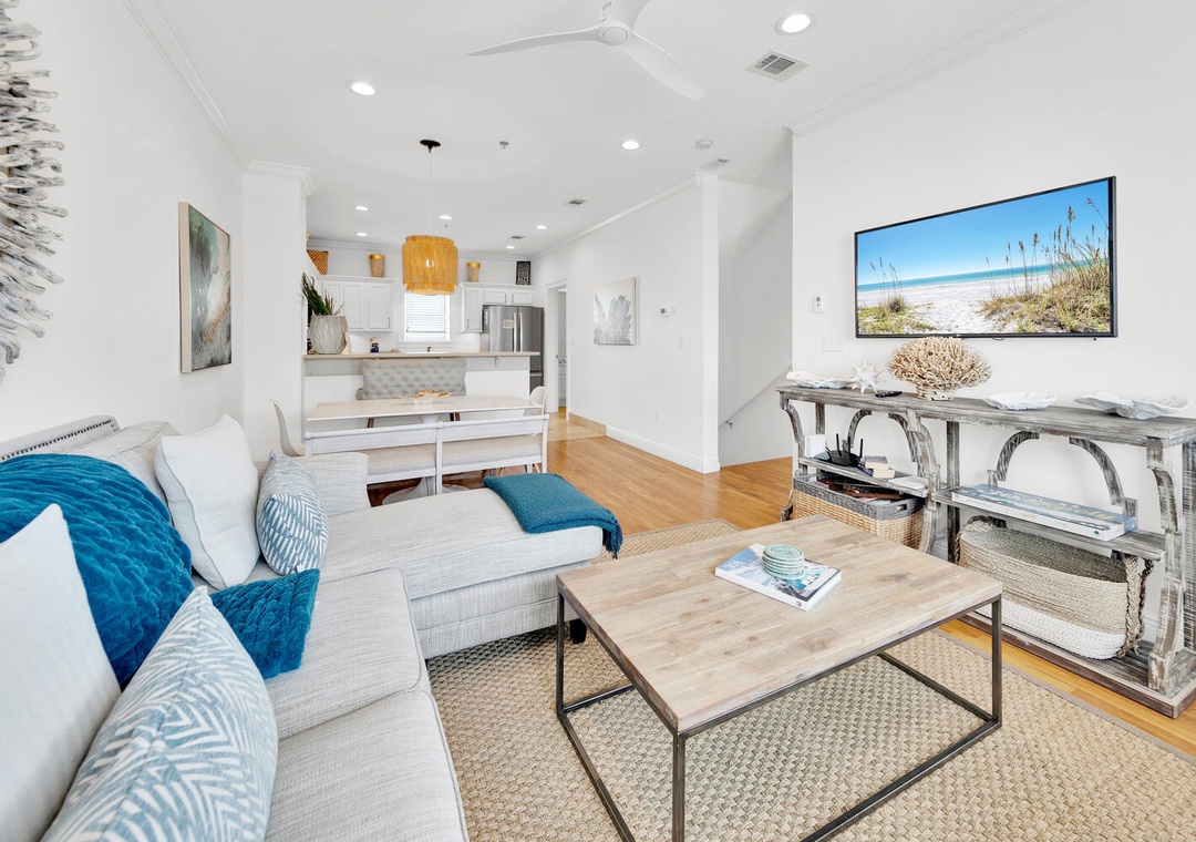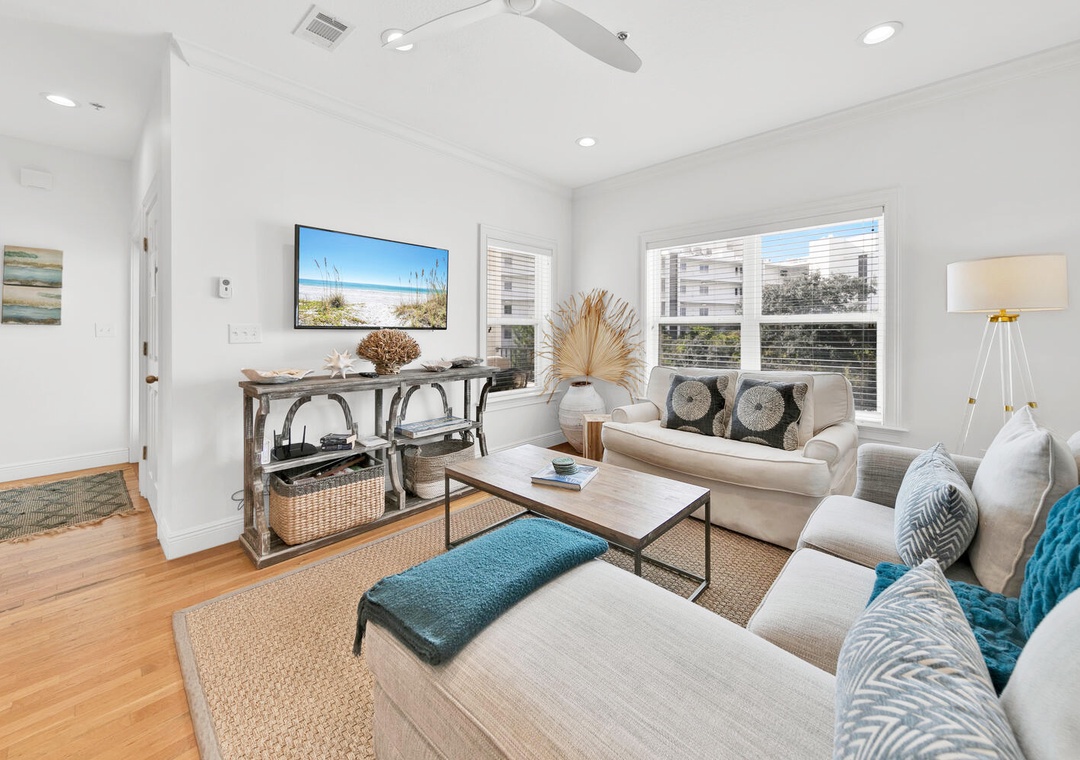 This townhouse is on the beach side of 30A and literally steps to the beach. There is a sea view from 2nd and 3rd floor balconies. The master and a twin loft is on third floor, living/kitchen on second and 2nd bedroom with a full bath is on first floor. The townhome was immaculate and the property manager was excellent. They provided clear instructions and were very responsive to any question I had. The kitchen was well equipped. The location in Seagrove Beach is perfect. Can ride bikes to restaurants, donut shop and more.- Reviewed On: 7/24/2025