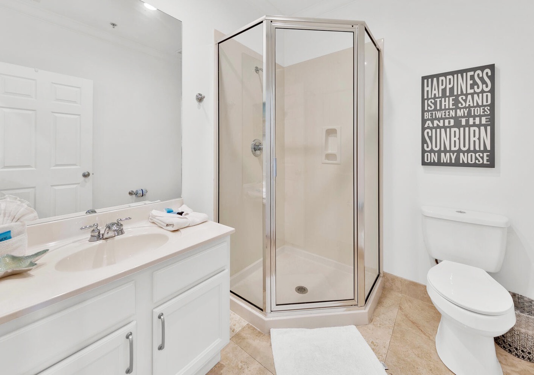 RealJoy's was an amazing place. The location so close to the beach is a winner. In addition, there are a few shower areas to clean the sand off the chair, toys, and body on the way back to the condo. The bikes that are included were such a hit, we were able to ride them to the food trucks. Also, Angelina's Pizza has amazing pizzas and salads and it's only a few steps away. Lastly, our kids ( 7 and 11) were confortable in the room downstairs but may not be a good option for smaller kids. I would definitely stay here again.