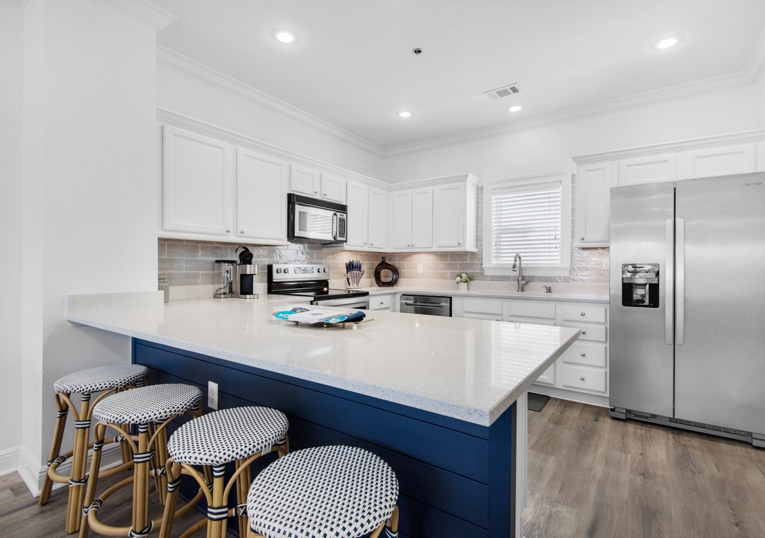 Welcome to a luxury beach experience! Legacy 505 - Pearl by the Sea is a stunning 3 bedroom, 3 bath townhome in Legacy Condos located right on Hwy 30A. Situated in Seagrove Beach and only minutes from Seaside, this bright, 3-story townhome features tile and hardwood flooring throughout, a fully equipped kitchen on the second floor with gorgeous granite countertops and stainless steel appliances, and two extended balconies for enjoying the Gulf Views! The first floor of the townhome offers a guest bedroom with a Queen-over-Quenn bunk bed and a second guest bedroom with a Queen bed. On the third floor, you will find the master bedroom with a King bed and a large ensuite bathroom, complete with double vanity sinks, a soaking tub, and a separate shower. You'll also find a Twin-over-Twin bunk bed in the sleeping nook on the third floor. Relax on one of the balconies, catch some sun at the pool, or hop on the bikes and explore Seaside! Come have long-lasting memories by making Pearl by the Sea your next beach vacation!