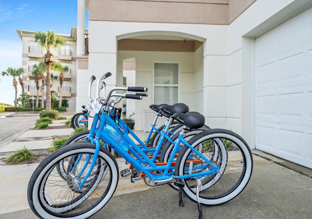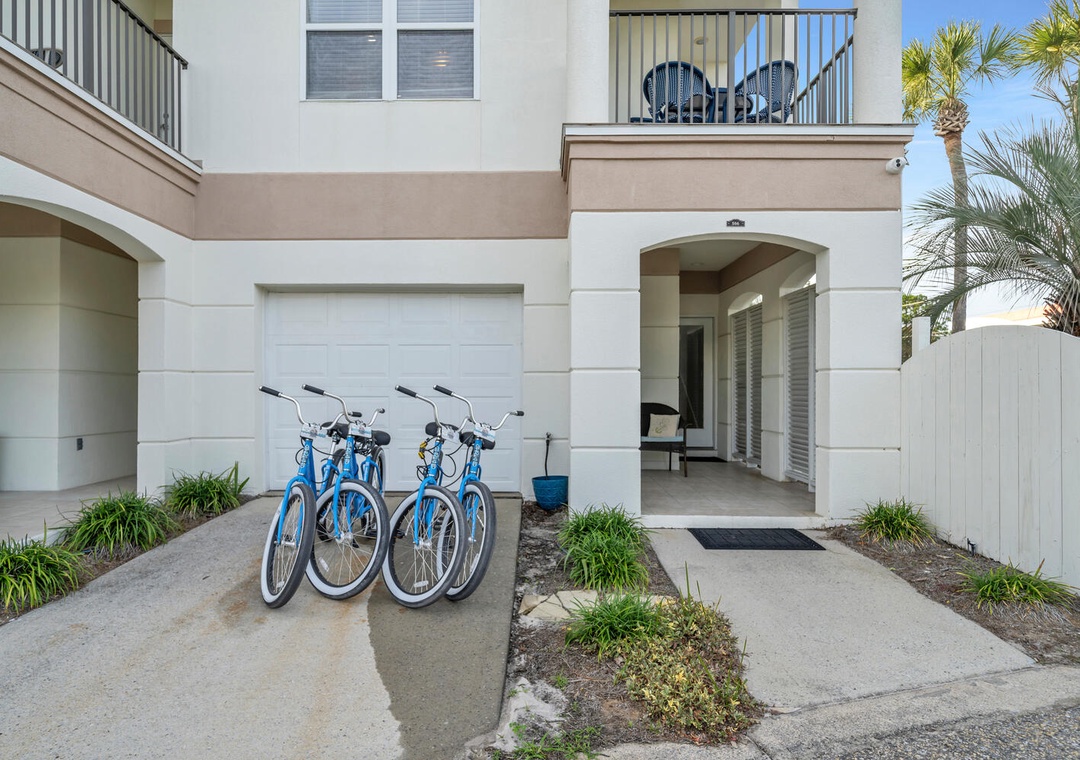 I stayed at this place with my daughter and three of her friends. It was more than enough space for us and the location was absolutely perfect for teens to be able to have some ability to range on their own. Having the bikes was a game changer and we biked into Seaside almost daily. Took less than 10 minutes And we were right in the mix of all of the fun shops and restaurants. I would say this unit will be perfect for two families with a couple of kids or one family with a lot of kids. Bottom level is the bunk room that you have to go through to get to the queen room which has the bathroom. There’s another full bathroom on the main level and then there’s a third floor, which has the king bedroom and king bathroom, which is huge. The unit balconies are on the street side but it wasn’t very noisy. You have a decent view of the ocean from the top level, but it is super close to the beach and it felt very safe. Great place to stay!- Reviewed On: 10/16/2025