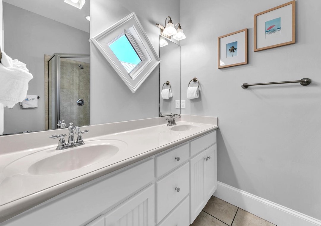 Welcome to your home away from home at Lily Pad. A three-bedroom three-bathroom home located right by Carillon Beach and is sure to make your next vacation trip a memorable one! On the first floor, you will find guest bedroom 1 featuring a queen bed and ensuite bathroom. On the second floor, you will find a master bedroom with a king bed and an ensuite bathroom and a guest bedroom 2 with two full-over-full bunk beds with an ensuite bathroom, making this condo sleep up to 8 guests comfortably. Cook up a lovely dinner for everyone in your well-equipped kitchen with stainless steel appliances. Enjoy sitting out on the balcony at sunrise with a nice cup of coffee. Come see why the fun never stops at Lily Pad!