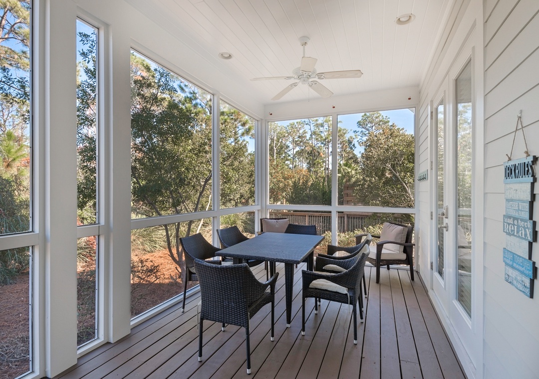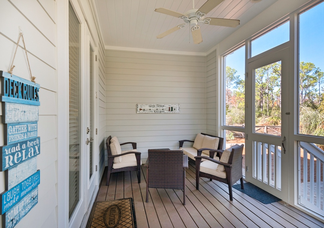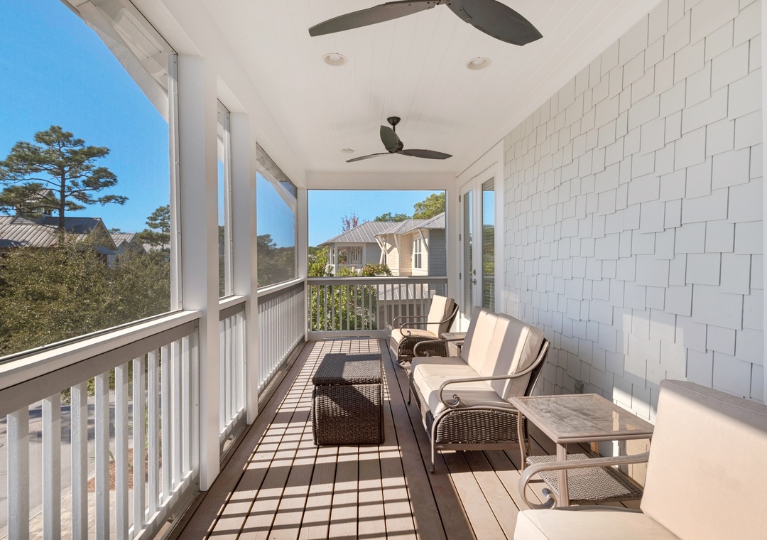 * 2 Screened-in Porches + 2 Balconies with Fans and Ample Seating