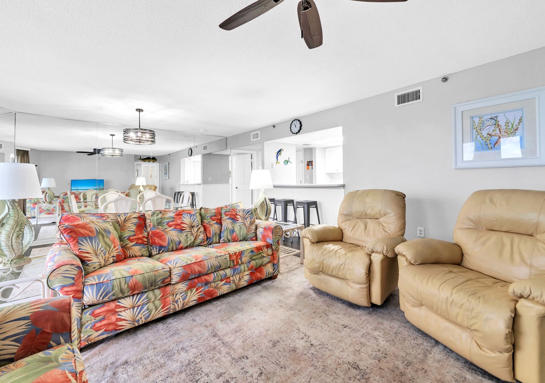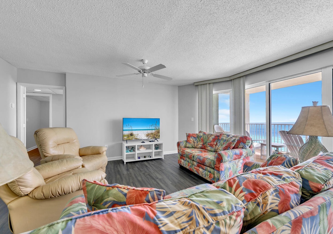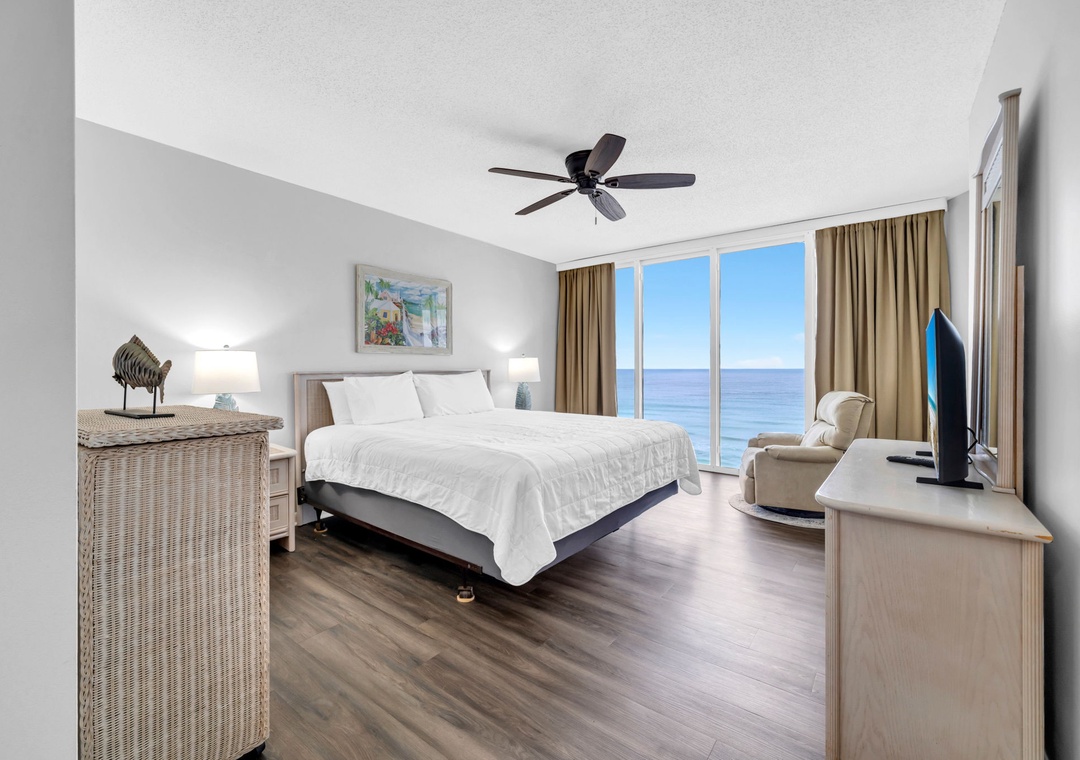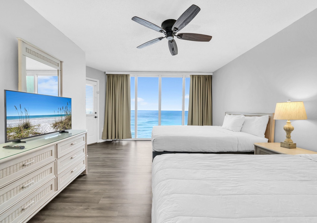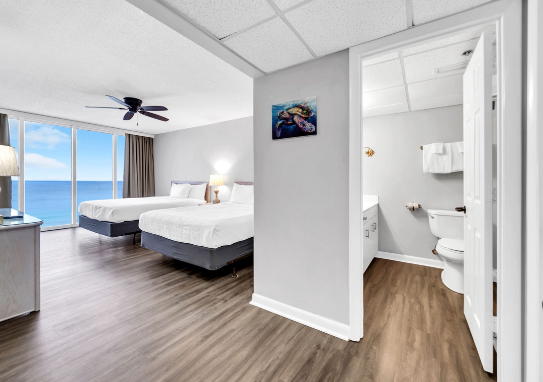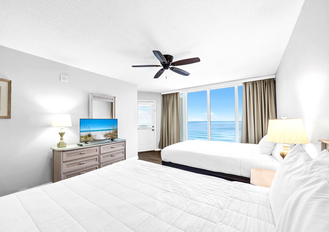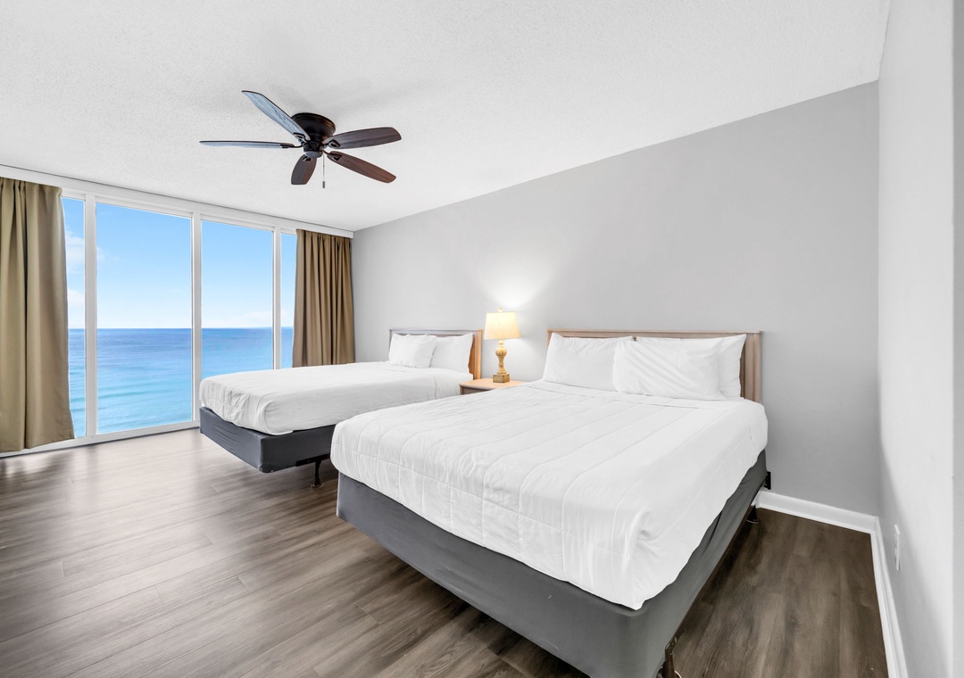 Welcome to Long Beach Resort 2-1304, a beautifully updated 2-bedroom, 2-bathroom condo featuring fresh paint and new LVT flooring throughout. The impressive floor-to-ceiling windows offer breathtaking gulf-front views from every corner of the unit. The fully equipped kitchen is perfect for the chef of the group to prepare delicious meals, while the private balcony provides the ideal spot to enjoy your morning coffee and watch the sunrise. The spacious living room is designed for comfort, with stunning views that will take your breath away. A standout feature of this condo is that both bedrooms have access to the balcony. The master bedroom boasts a king-size bed, while the guest bedroom offers two queen beds. Additionally, a queen sleeper sofa in the living room ensures the condo comfortably accommodates up to 8 guests. Experience the charm of Long Beach Resort 2-1304 for your next Panama City Beach escape or family vacation on the Gulf Coast!