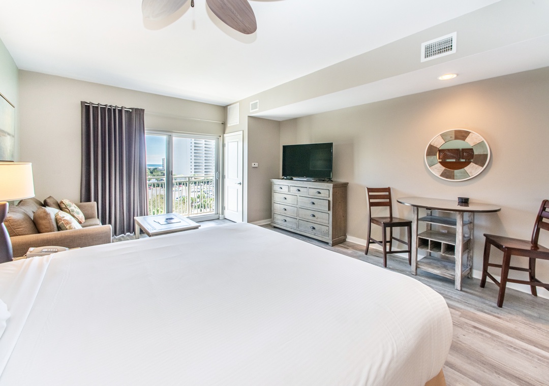 Luau II 6425- Suite Destin-ation is located beachside in Sandestin Golf and Beach Resort! Only a short stroll from the beach, this Studio condo is updated with comfortable furnishings, a large flat screen TV, and NEW wood-look tile flooring. There's a spacious king bed and a sleeper sofa in the living area, a kitchenette with tile countertops, and a private bathroom. When you're not catching sun on the beach, take a dip in the community pool, or take in an amazing sunset from the 19th floor rooftop terrace of Luau Tower 1! Come have the beach vacation of a lifetime at Luau II 6425- Suite Destin-ation!