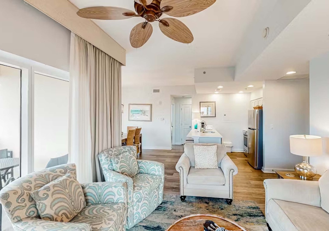 Welcome to Luau II 6832, a beautifully appointed one-bedroom, one-bath condo located within the renowned Sandestin Golf and Beach Resort in Miramar Beach. This inviting retreat comfortably sleeps up to four guests and features a luxurious king bed in the master bedroom and a queen sleeper sofa in the living area. Enjoy stunning views of both the city and the Gulf from your perfect perch above the resort. After a day spent at the beach or exploring everything the resort has to offer, relax in the comfortable living room with ample seating for gathering with family and friends. The well-equipped kitchen features stainless steel appliances and sleek countertops, making it easy to prepare meals to enjoy at the formal dining table. The master bedroom offers peaceful views of the community pond, creating a relaxing space to unwind at the end of the day. Additional conveniences include a private washer and dryer, ensuring everything you need for a comfortable and memorable stay. Your Miramar Beach vacation begins the moment you arrive at Luau II 6832.