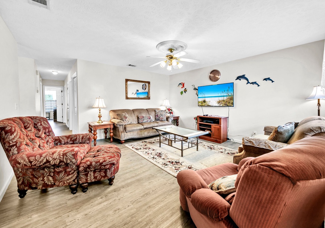 Welcome to Lyndell Beach Cottage. This cozy 3 bedroom 2 bath cottage is a quick walk to the beach and is perfect for your family getaway. Unwind in the living room on comfortable furniture and flat screen TV after a long day at the beach. A fully equipped kitchen provides the chef of the group to whip up delectable meals or enjoy one of the many near by restaurants. When it’s time to call it a day, you’ll find a king guest bedroom and an additional guest room with Twin over Twin Bunks with a twin trundle to comfortably sleep 7. Parking for 4. Parking in garage not available. Come see why Lyndell Beach Cottage will be your family favorite for years to come.