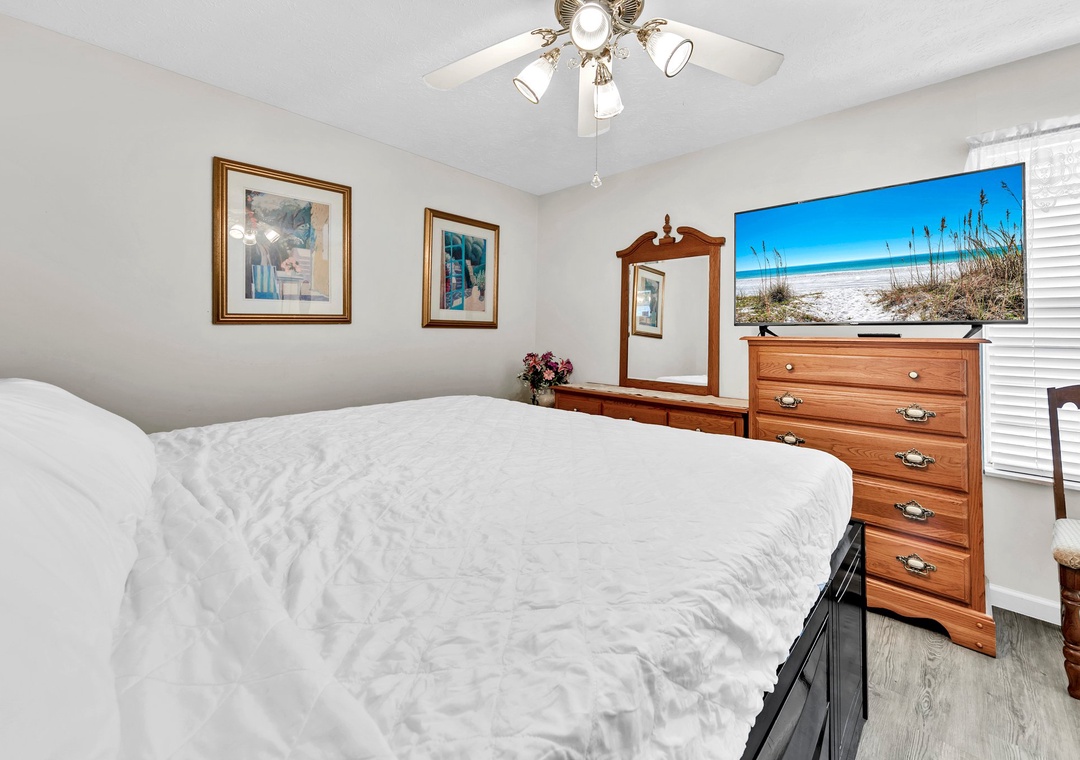 Short walk to the beach. Easy distance to tote your stuff. Just bring some box fans. The two smaller bedrooms do not have fans in them.- Reviewed On: 7/6/2024