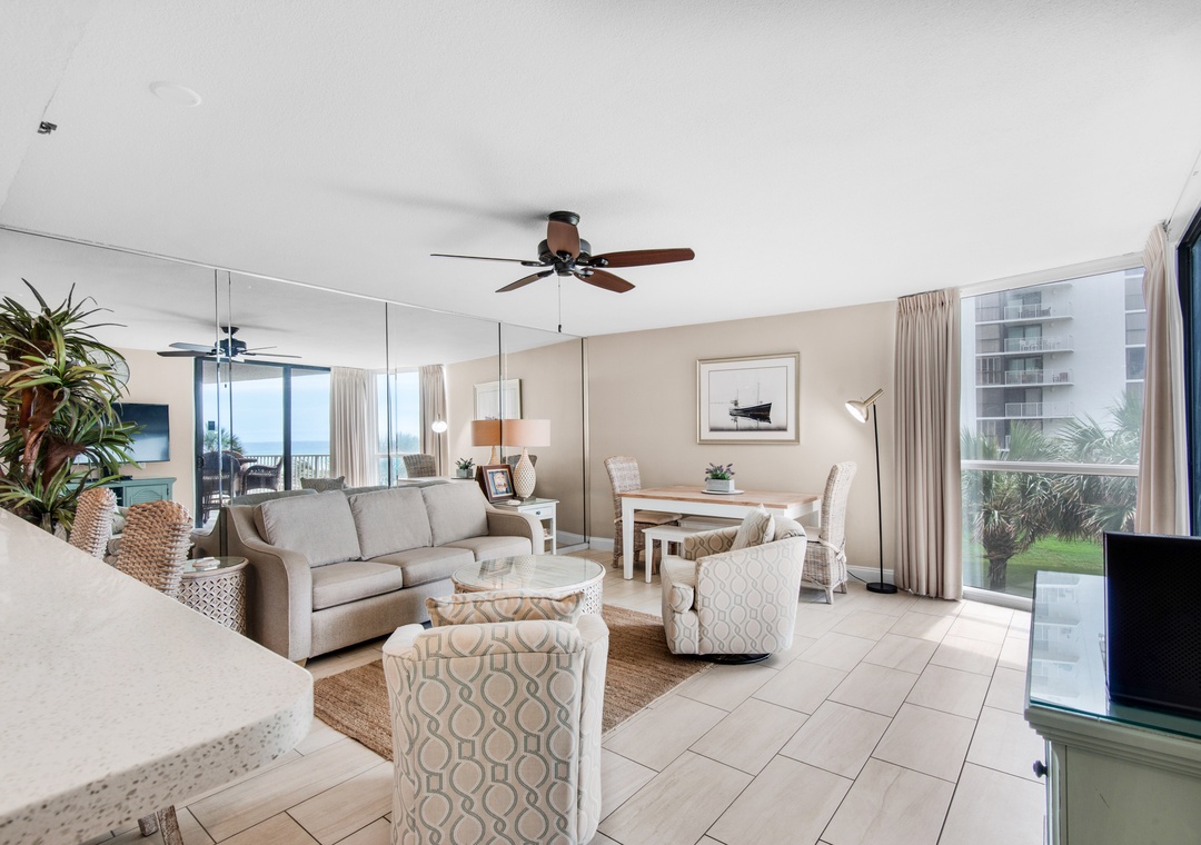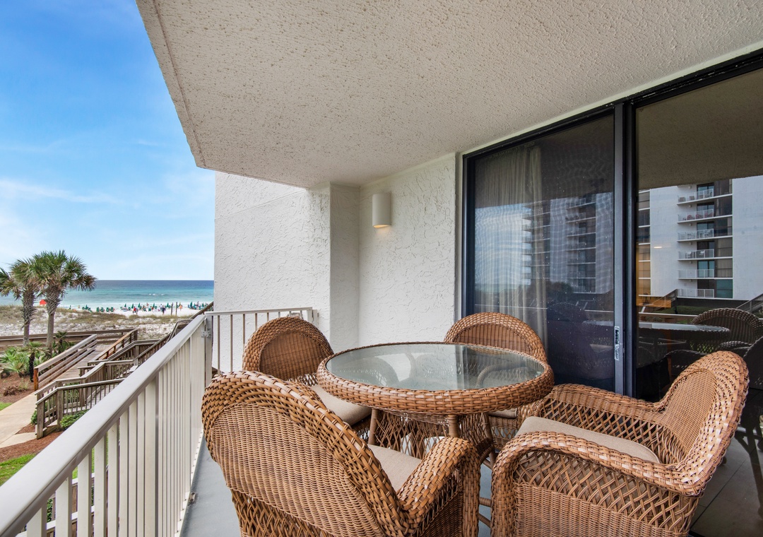 Mainsail 213 is a newly remodeled 2 bedroom, 2 bath condo located a short walk to Miramar Beach! This lovely condo has upgraded tile floor throughout, new furniture, appliances, washer/dryer, electrical, sliding door and windows. Sleeping accomodations include 2 bedrooms and 2 baths, including a king bed in the master suite, a king bed in the guest bedroom with ensuite bathroom, and a sleeper sofa in the living room, sleeping up to 6 guests comfortably! Enjoy the large balcony with stunning views of the Gulf and the community pool, accessible from the living room or master suite. The balcony has stairs that lead down to the ground for direct access to the beach and pool. Come see why Mainsail 213 is a favorite beach destination!