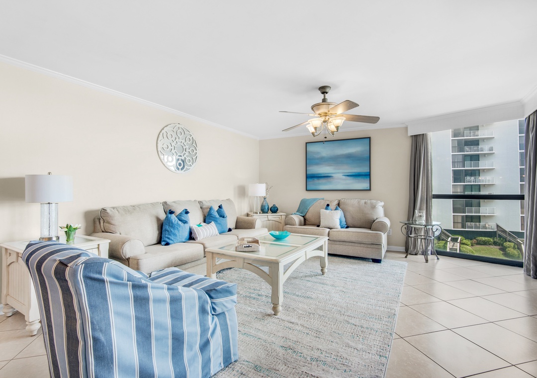 This property is located on an incredible stretch of beach, eight miles east of Destin and less than a mile from Sandestin, and features a beautiful 15-acre gulf-side family resort. This luxury condominium boasts an array of amenities, you'll enjoy the 2 pools (North Pool and Hot tub are heated year round), hot tub, fitness center, sauna, kiddie pool, covered parking, courtesy patrol, wireless Internet access, and meeting facilities. With its close proximity to the Silver Sands Designer Outlet Mall, golf, fine dining, and a host of other activities, you will be guaranteed a fun-filled stay!