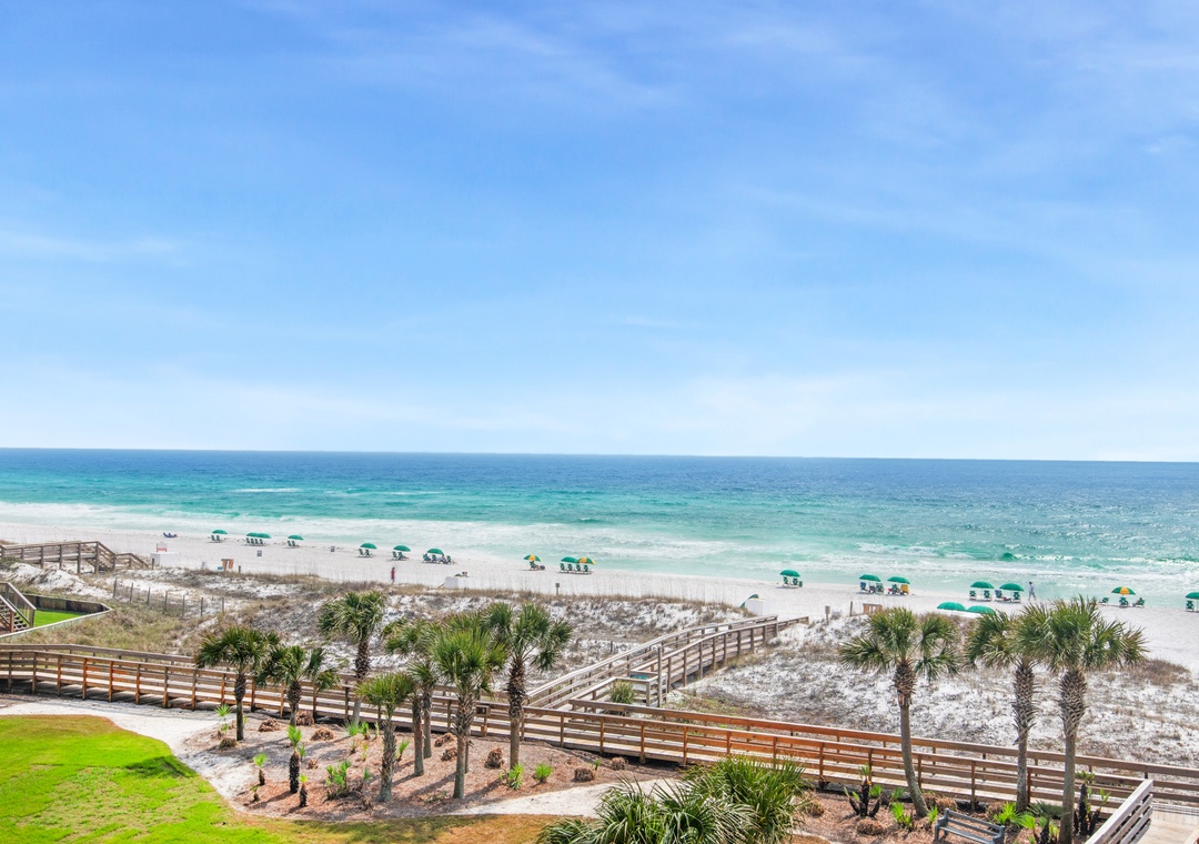 Though well-loved, this condo was very clean, and that makes a place near and dear to my heart! Great balcony with nice furniture that affords a fabulous view of the beach, which was great when afternoon rainstorms came through because we could retreat to the balcony and still see the glorious view. The beach and water were pristine and gorgeous - could not have been better. The building puts out chairs and umbrellas in the morning, but one thing we learned is that the front row facing the water are reserved for owners, not renters, who get to sit in the "U" formations. If you want to be close to the water, you have to get down there pretty early (before 7!) to claim the front seats in the "U" - just something to be aware of! The towels/linens were not the most luxurious, but that was ok as our main mission was to be on the beach all day. 10 min. walk to Surf Hut restaurant on the beach, 30 min. drive to Alys/Rosemary, and right across from great outlets if you have a rainy day!