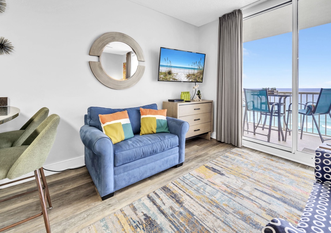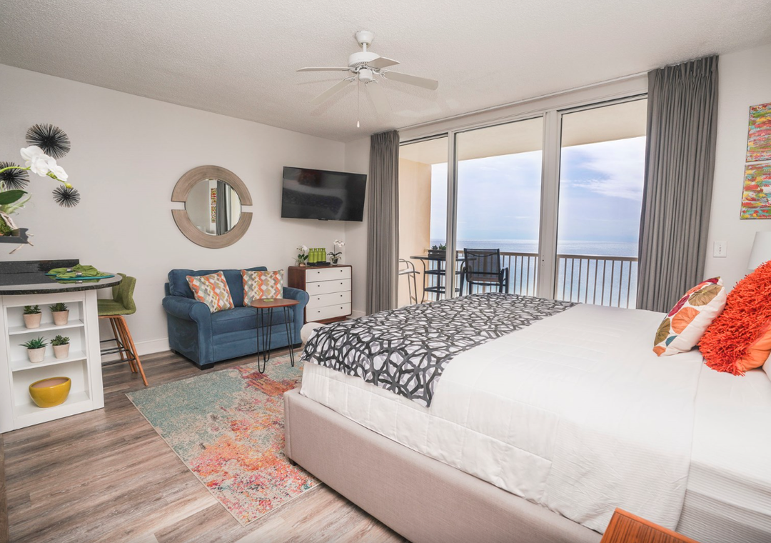 Welcome to Majestic Beach Towers 1-1209, a stunning beachfront studio perched on the 12th floor of Majestic Beach Resort in beautiful Panama City Beach. This inviting Gulf-front retreat showcases breathtaking views of emerald waters and sugar-white sand from your oversized private balcony—perfect for morning coffee or sunset cocktails. Designed for comfort, the condo features a king bed with Gulf views, a twin sleeper sofa in the living area, and a full bathroom with a shower/tub combination, comfortably accommodating up to three guests. The well-equipped kitchen makes dining in effortless, while the open living space allows you to relax and unwind with the beach as your backdrop. Guests enjoy access to exceptional resort amenities, including five pools, three hot tubs, tennis courts, a full-service spa, a private movie theater with stadium seating, and an on-site deli market proudly serving Starbucks. Discover why Majestic Beach Towers 1-1209 is a sought-after Panama City Beach favorite for unforgettable coastal getaways.
