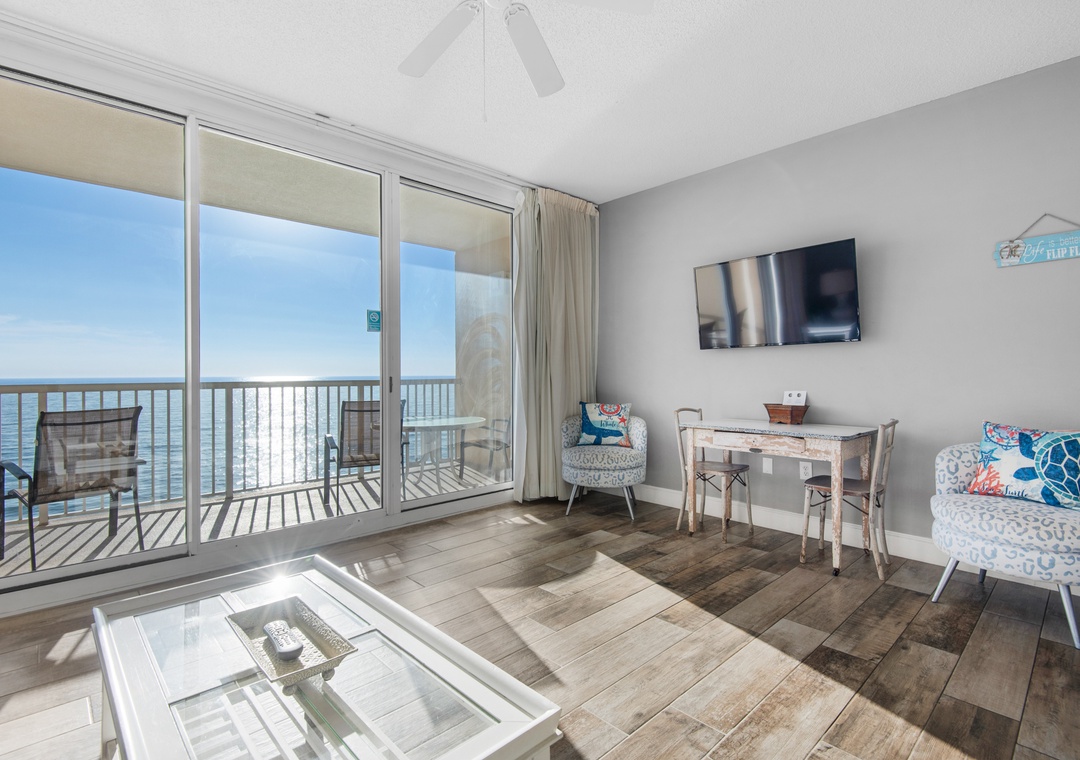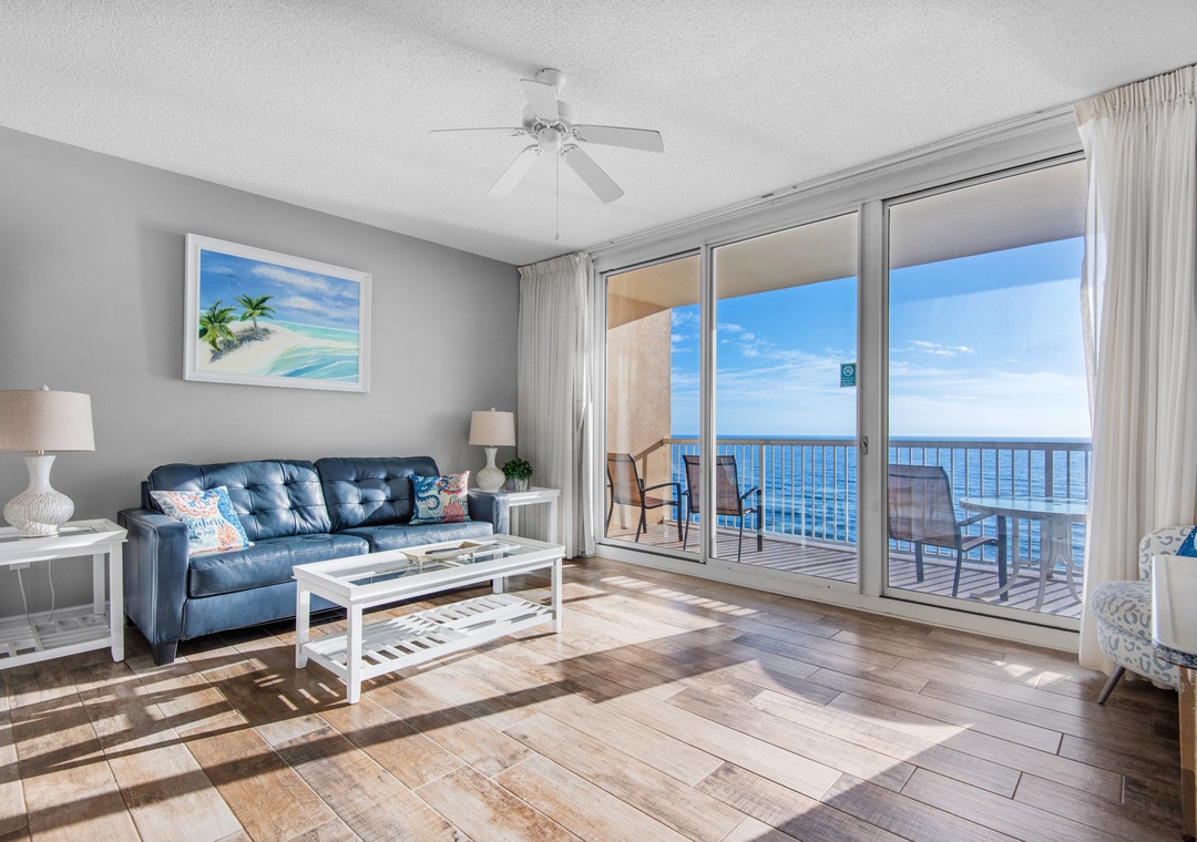 Welcome to Majestic Beach Towers 1-1210. This beautiful 2 bed 2 bath condo has brand new wood-look tile throughout the living and sleeping areas, new tile within the kitchen and bathrooms, and fabulous gulf views from the 12th floor. Unwind in the master which features a comfortable king bed with en suite. Guests will find a queen bed in the second bedroom, and a queen sleeper sofa in the living room, which allows this unit to sleep up to 6 guests comfortably. The GULF FRONT balcony is the perfect spot to relax and take in the evening sunsets. The fully equipped kitchen has everything you’ll need to make delectable meals. The living area offers a coastal feel and a large flat screen TV. Come see why Majestic Beach Towers 1-1210 will be a favorite for years to come.