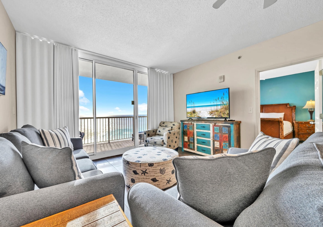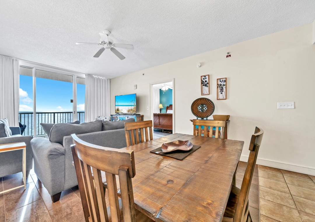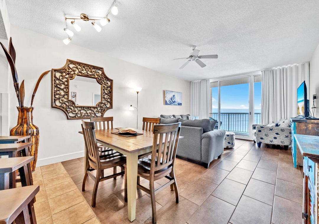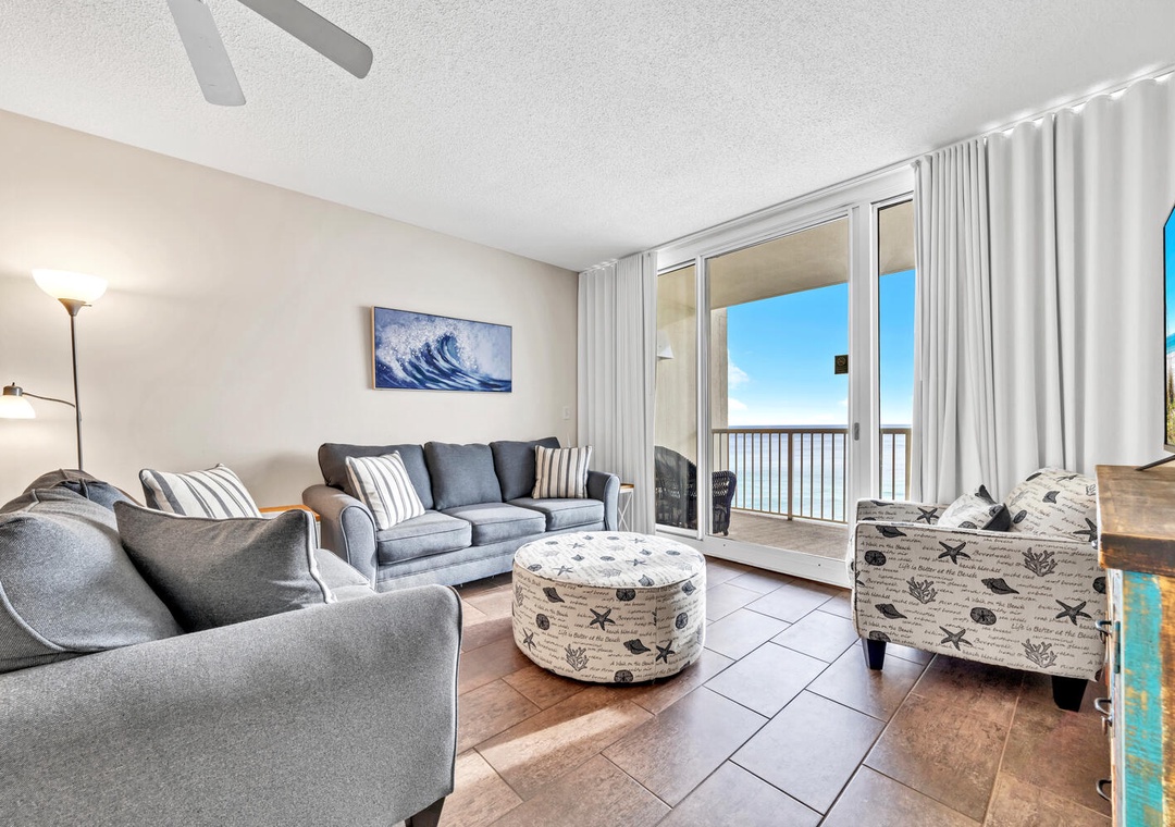 Welcome to Majestic Beach Towers 1-1304! This beautiful 13th floor condo features updated flooring in the living room and bedrooms, 25 ft balcony, and stunning gulf views. Unwind in the master bedroom with a king bed, balcony access, and large En suite with walk in shower and garden tub. There is a king in the second bedroom and a twin bed with trundle in the third bedroom, and sleeper sofa, allowing up to 8 guests to sleep comfortably. With a fully equipped kitchen, dining area, and a spacious living room layout that opens up to a huge balcony overlooking the Gulf, you'll never want to leave. There is also a washer/dryer for your convenience. Majestic Beach Resort has five pools, three hot tubs, a movie theater with stadium seating, tennis courts, a spa, and health club, and a deli market with a Starbucks. Come see why Majestic Towers 1-1304 is Panama City Beach's favorite!