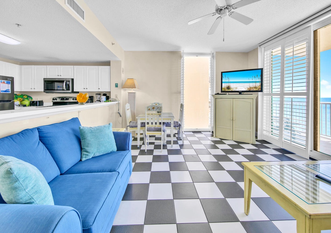 Majestic Beach Towers 1-1615 is a stunning 1BR, 1BA GULF FRONT unit that offers 16th floor breathtaking views of the emerald waters and sugar white sand beaches. This unit features a king bed in the master suite, and a queen sleeper sofa in the living room to comfortably accommodate 4 guests. It also includes a washer/dryer for your convenience. With a full-size kitchen, a lovely eating area, and a spacious living room layout that opens up to a huge balcony overlooking the Gulf, you won’t want to leave. Majestic Beach Resort has five pools, three hot tubs, a movie theater with stadium seating, tennis courts, spa and health club and a deli market with a Starbucks. Come see why Majestic Towers 1-1615 is a Panama City Beach favorite!