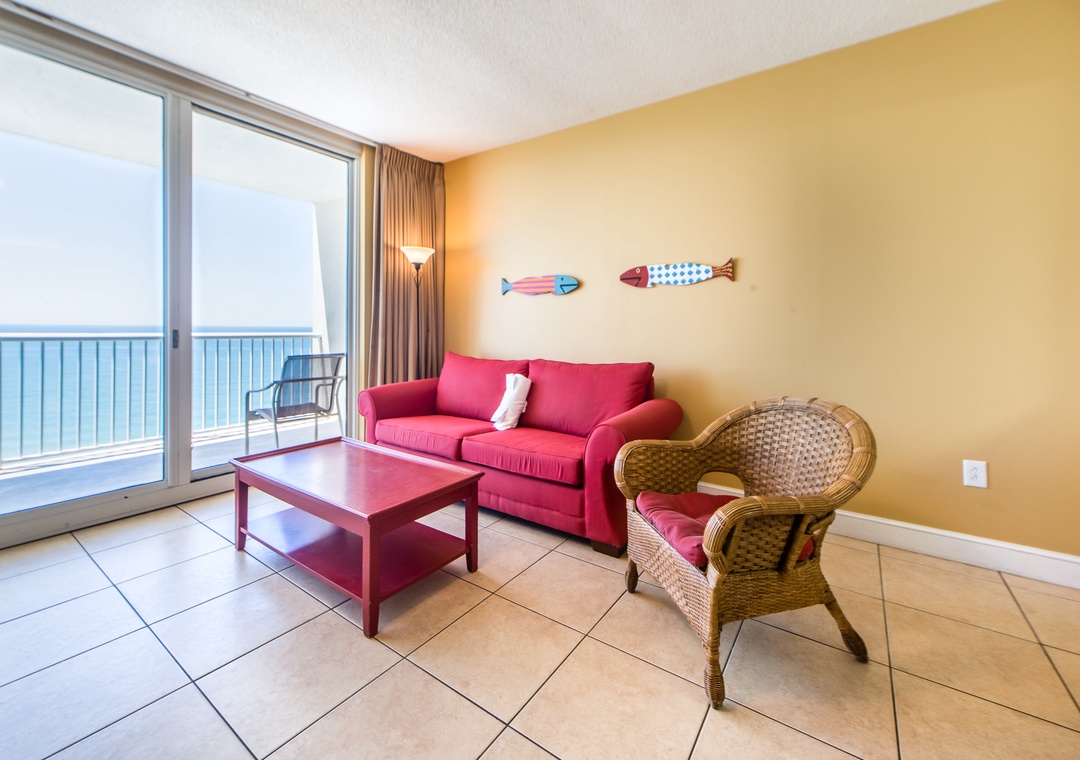Majestic Towers 1-1706 is a stunning 1 bedroom + bunkroom, 2 bath GULF FRONT unit located on the 17th floor offers breathtaking views of the emerald waters and sugar white sand beaches. This unit features a queen bed in the master suite, twin bunk beds in the hallway with an attached bath, and a sleeper sofa in the living room to comfortably accommodate 6 guests. It also includes a washer/dryer for your convenience. With a full-size kitchen, spacious eating area, and an open living room layout that opens up to a huge balcony overlooking the radiant Gulf of Mexico, you won’t want to leave. Majestic Beach Resort has five pools, three hot tubs, a movie theater with stadium seating, tennis courts plus a deli market with a Starbucks! Come see why Majestic Towers 1-1706 is a favorite for all!
