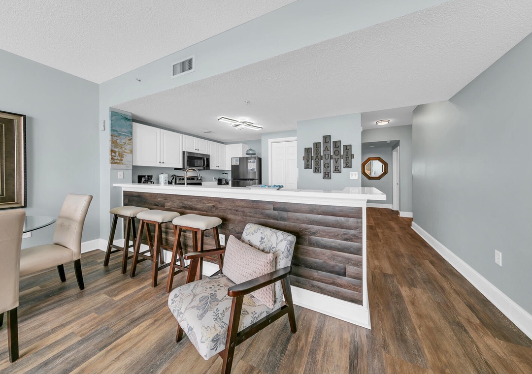 This was our first time in PCB and this condo was amazing! The views are amazing from sunrise to sunset. Getting to and from the beach is easy and we were able to get everything we needed delivered from Walmart.