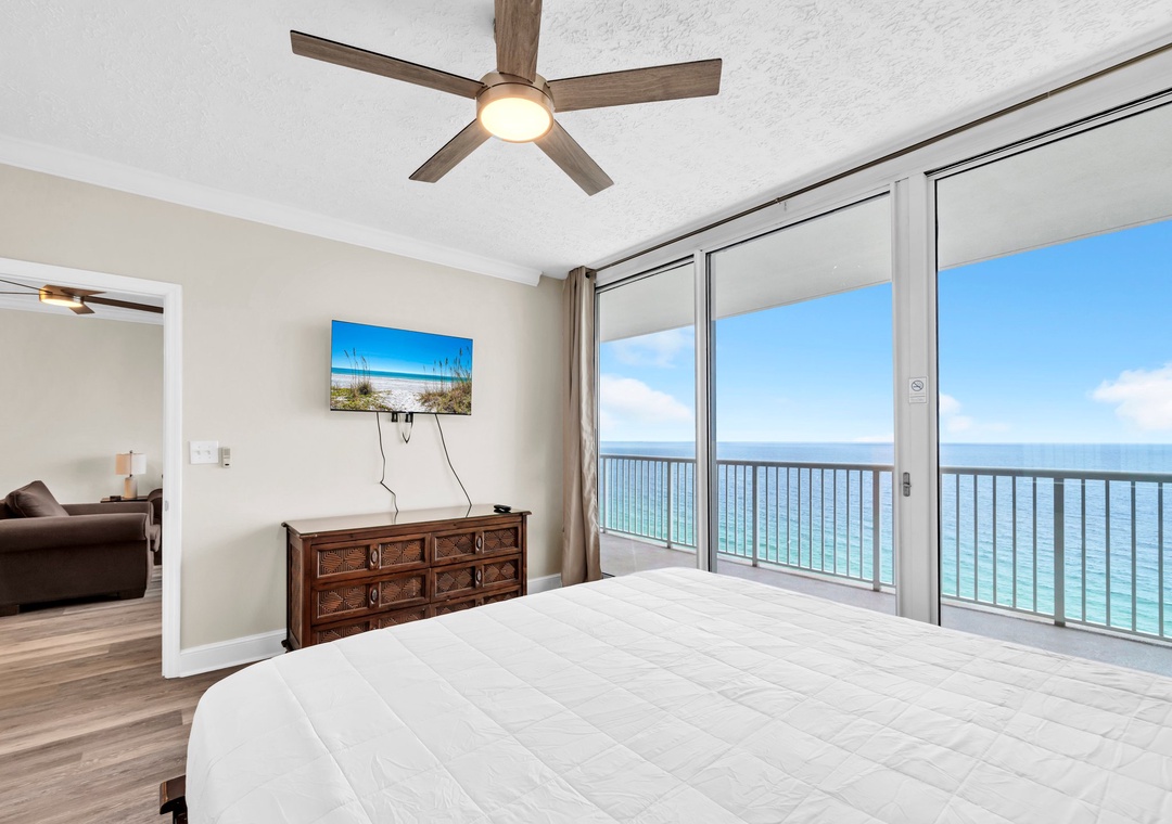 Welcome to Majestic Beach Resort Tower I, Unit 2003 — Your Coastal Retreat Awaits. Escape to this beautifully appointed 3-bedroom, 2-bathroom condo in the heart of Panama City Beach, perfectly suited for up to eight guests. Perched on the 20th floor, this bright and breezy unit offers stunning views and all the comforts of home. Wake up to the sound of the waves in the king master suite, complete with direct access to the private balcony where you can sip your morning coffee with panoramic Gulf views. The en-suite master bath features a walk-in shower and a luxurious soaking tub — perfect for unwinding after a day in the sun. The second bedroom offers a comfortable queen bed, while the third is equipped with a twin-over-twin bunk bed — ideal for kids or extra guests. A shared full bathroom serves both rooms. Need more space? The living area includes a queen sleeper sofa for additional accommodations. Cook up your favorites in the fully equipped kitchen or relax and dine al fresco with a backdrop of emerald waters and white sandy beaches. Whether you’re lounging poolside, strolling the shore, or exploring nearby attractions, this is the perfect home base for your Panama City Beach getaway. Majestic Beach Towers 1-2003 is more than a vacation rental — it’s your new favorite beach escape. Book your stay and make unforgettable memories by the sea.