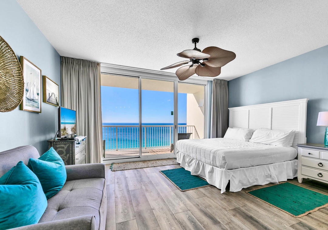 Majestic Towers 1-2109 is an amazing condo with a WOW factor! This stunning studio, 1 bath GULF FRONT unit located on the 21st floor offers breathtaking views of the emerald waters and sugar-white sand beaches. This unit features a king bed, and single pull-out chair to comfortably accommodate 3 guests. With a full-size kitchen, a washer/dryer for your convenience, and a huge balcony overlooking the radiant Gulf of Mexico, you won’t want to leave.