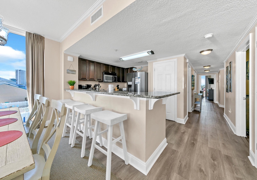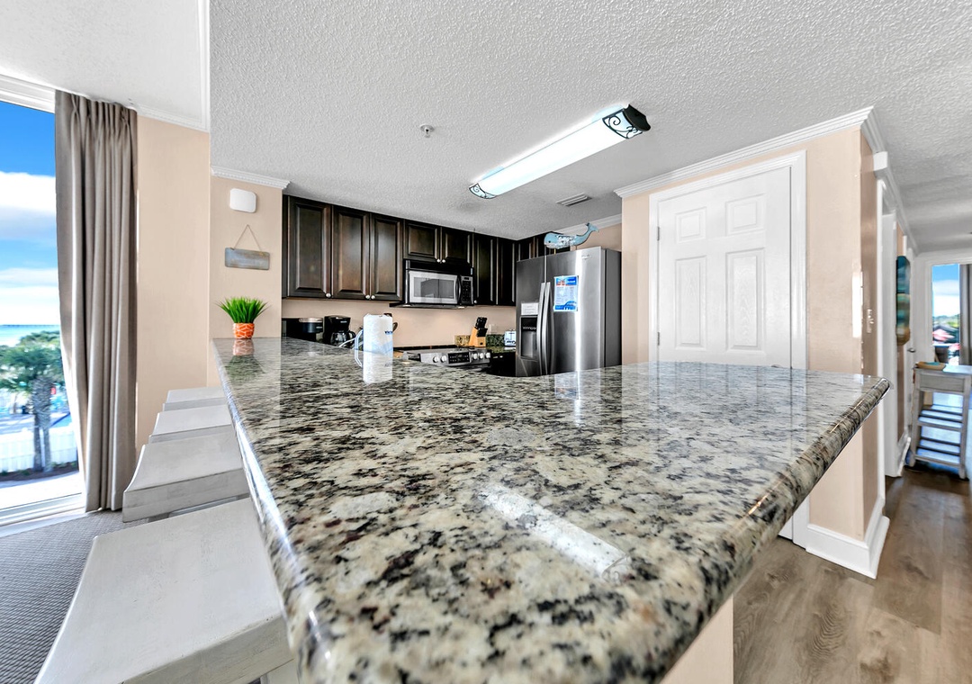My family loved this condo! Having a 3rd floor corner balcony was so nice. My only suggestion would be new cushions for the patio furniture, since we spent so much time using it. The condo was clean, well equipped and very well decorated. My family of 5 Adults & 3 children had plenty of space. We will definitely stay in this exact condo again when we come back to PCB. The facility itself had plenty to offer and the beach chair service was a big plus. We were close to everything.- Reviewed On: 10/13/2019