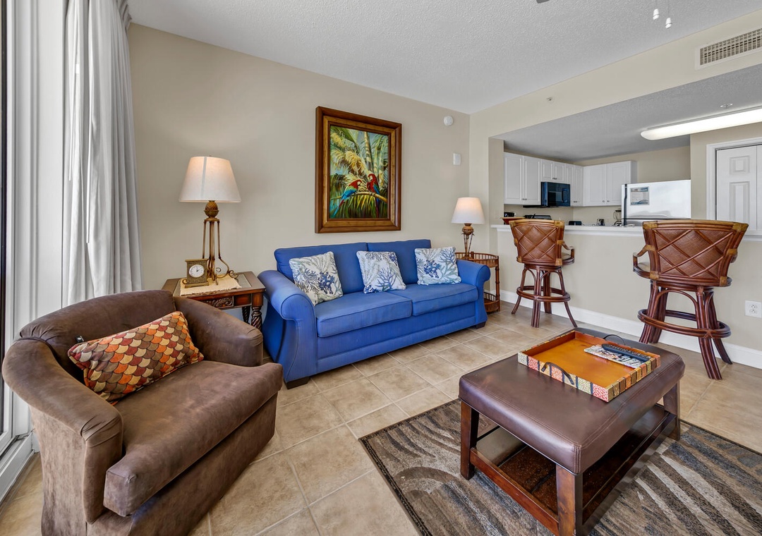Welcome to Majestic Beach Towers 1-407! This beautiful 2-bedroom 2 bath condo is located on the 4th floor of Tower 1 and offers breathtaking views of the Gulf of Mexico. The oversized balcony allows guests to start mornings off with a cup of coffee breathing in the salty air or end the day with a favorite beverage while watching the sunset in paradise. The fully equipped kitchen provides stainless steel appliances and plenty of space to prep a meal. An open layout allows guests to converse with ease while cooking, eating, or relaxing in front of the TV. Unwind after a day in the sun in the master bedroom which features a king bed and a spacious en suite with a walk-in shower and soaker tub. Guests will also find a king bed in the additional bedroom and a sleeper sofa in the living room to accommodate up to 6 guests comfortably. For added convenience, there is an in-house washer and dryer. Come let Majestic Beach Towers 1-407 be one of your favorite vacation spots.