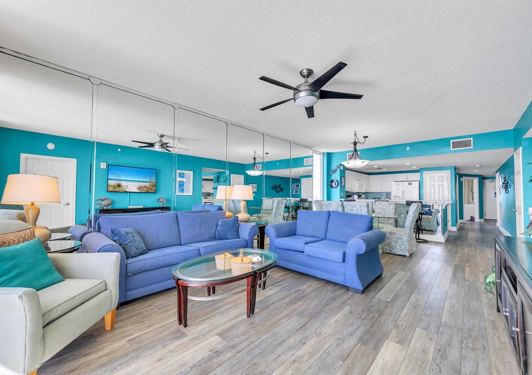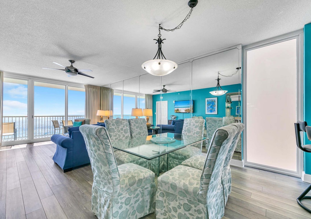 Majestic Beach Towers 2-1801 is a stunning 3-bedroom, 2-bathroom Gulf-front condo, offering unbeatable views of the sparkling emerald waters and pristine, sugar-white beaches. Start your day by watching dolphins play in the early morning waves and end it with a breathtaking sunset over the horizon. The Gulf-front master bedroom features a king-size bed, private balcony access, and an en suite bath with a walk-in shower and jetted tub. Guest Bedroom 1 offers a cozy queen bed, while Guest Bedroom 2 has a twin-over-twin bunk bed. There’s also a queen sleeper sofa in the living room, allowing the condo to comfortably accommodate up to 8 guests. The spacious living room, with its floor-to-ceiling windows showcasing panoramic Gulf views, is the perfect place to unwind with a book from our collection. Majestic Beach Towers 2-1801 is your ultimate beachfront retreat—you won’t want to leave!