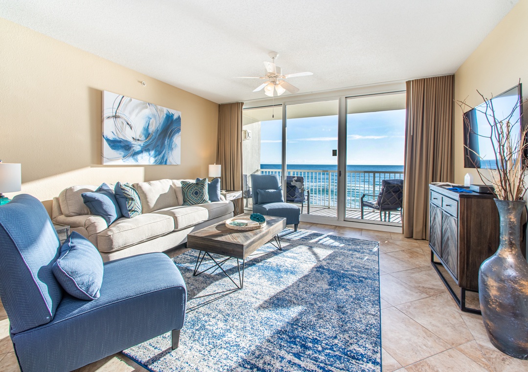 Majestic Beach Towers 2-403 is a stunning updated 2BR/2BA GULF FRONT condo that offers breathtaking views of the emerald waters and sugar white sand beaches. Wake up to watch the dolphins in the early morning waters and end the day with gorgeous sunsets. This lovely Panama City Beach condo features a king bed in the master bedroom, a twin bunkbed in the guest bedroom, and a queen-sized sleeper sofa in the living room, comfortably sleeping 6 guests. Additionally, the living room and bunk room have NEW smart TVs! With brand new tile flooring throughout, new kitchen appliances, and a spacious living room layout that opens up to a huge balcony overlooking the radiant Gulf of Mexico, you will never want to leave.