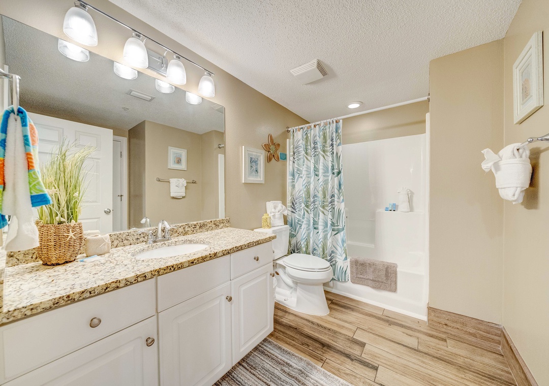 The condo was beautiful and had so much room for our family of 7. The bunk room is actually bigger than it looks in the picture. The entire check in to checkout was easy. Most difficult thing was the parking garage it just because I didn’t receive the email or it went to spam for the vehicle/parking, so had to call guest services before we could enter the parking garage to get the email resent to put our information for the vehicle in. Nice that was done the rest was easy. The only thing I would recommend for this condo is to add some towel hooks in the master bathroom closer to the shower and inside the master shower add a shower caddy, some shower command hooks, and a small shower bench. The master shower is very large but only one small built in cubby that fit one bottle of soap, the rest of our shampoos/conditioners/face wash, razor, rags, ect. we had to sit on the shower floor. I also shave in the shower instead of filling an entire bath (which is why I recommended a small bench) so I had to sit on the shower floor to shave. The sunset views were perfect from the front balcony and you really didn’t hear much outside noise from Front Beach Rd. Would definitely stay here again.- Reviewed On: 5/2/2024