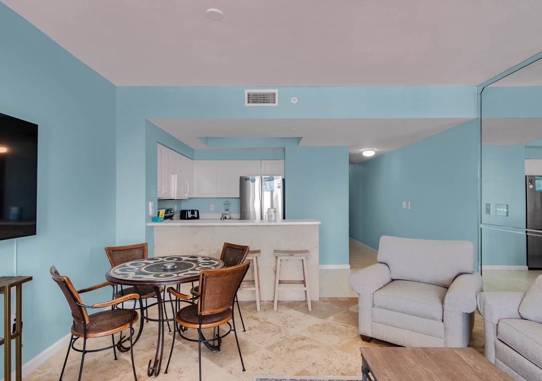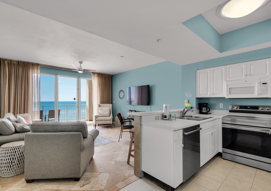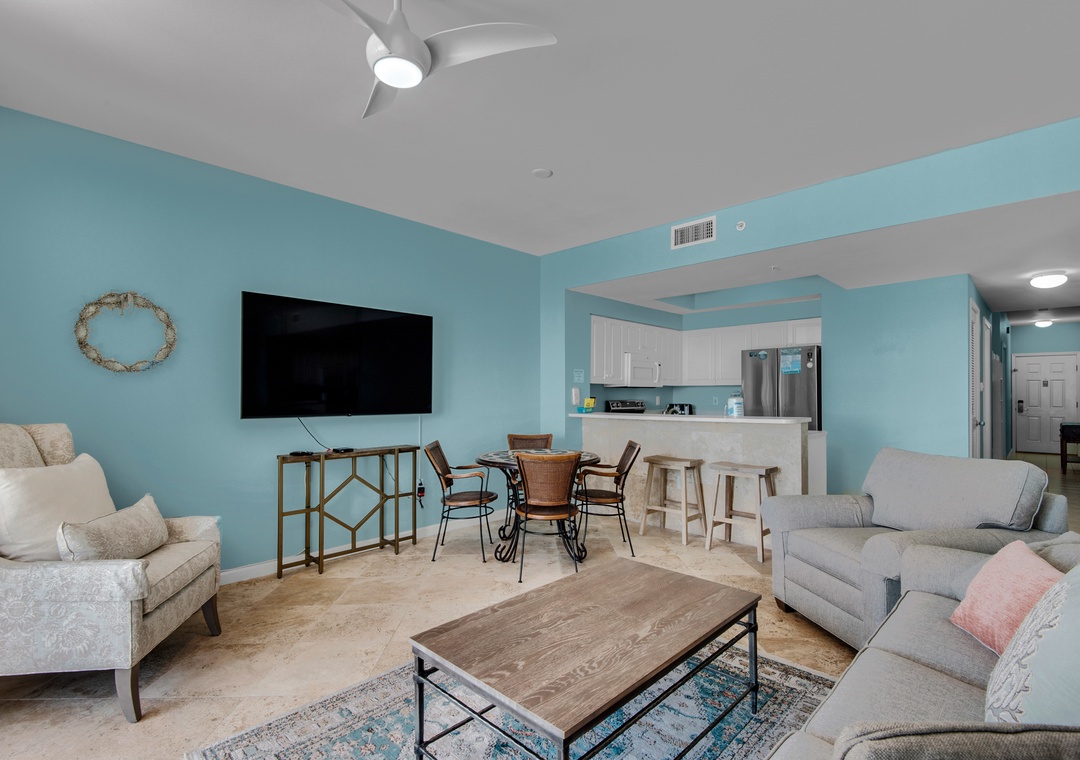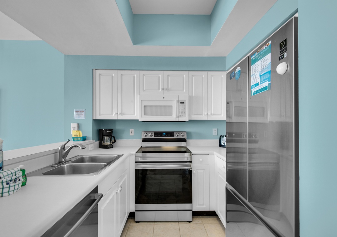 The condo was gorgeous! Perfect location for the beach. When we arrived, they had the lights turned low and music playing which was a very nice touch. We walked to the beach and enjoyed the 2 pools. It was nice having the indoor one to get away from the sun. The only issues were the fan in the master bedroom remote seems to be working a neighboring unit and vice versa. The light and fan would shut off and on random times. It was an issue in the morning when I was trying to dress my baby and the light kept shutting off. I would turn it back on and it would shut back off a few seconds later. My husband is a master electrician and said the remote fans typically interfere with eachother. It wasnt the other fan in our unit, but most likely a neighboring condo. The other issue was one of the elevators was acting up. It stopped on floors that werent selected and no guests were waiting and then dropped half a floor with us in it. I called the property emergency number because there wasnt anyone at the desk in either tower. Parking was a little odd due to our oversized vehicle but the security guards helped us find parking in the hotel garage. We walked to Whale Tale for dinner which was delicious. The store in tower 2 was nice to pick up beach items and very reasonably priced for close proximity to the beach . We didnt use the stove, coffee maker, dishwasher, or did any laundry during our stay so I cant attest to that but everything else was wonderful!- Reviewed On: 6/22/2022