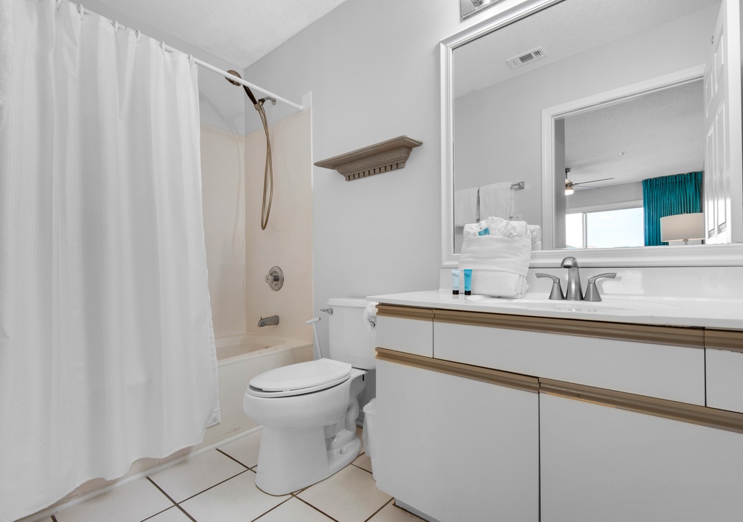 this place was clean and packed with amenities for the beach and fully stocked kitchen. the back pool with the hot tub is not to far from unit as well as front beach pool. the beach is beautiful but a bit crowded. it is a bit of a walk but not to bad the elevators are slow but very convenient. we did notice some small white bugs on the bed later on which could have been tracked in from outside over all it is very nice and great for a family.- Reviewed On: 5/25/2023