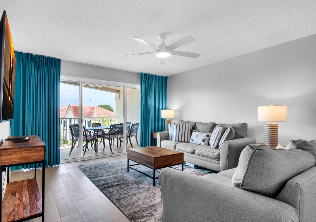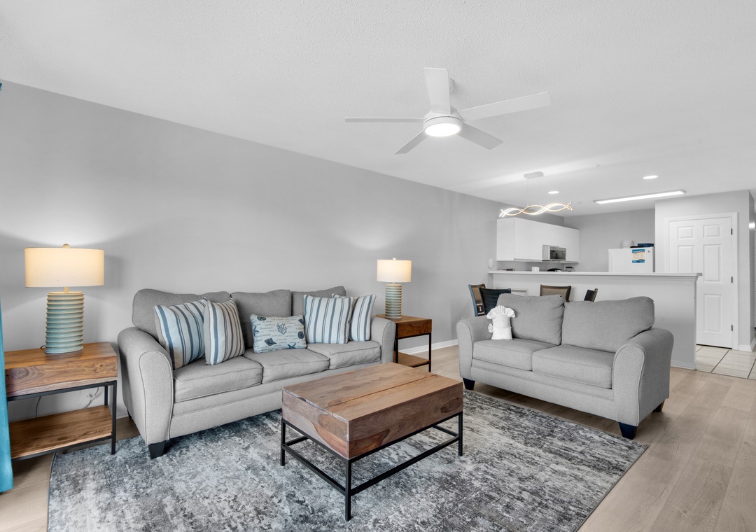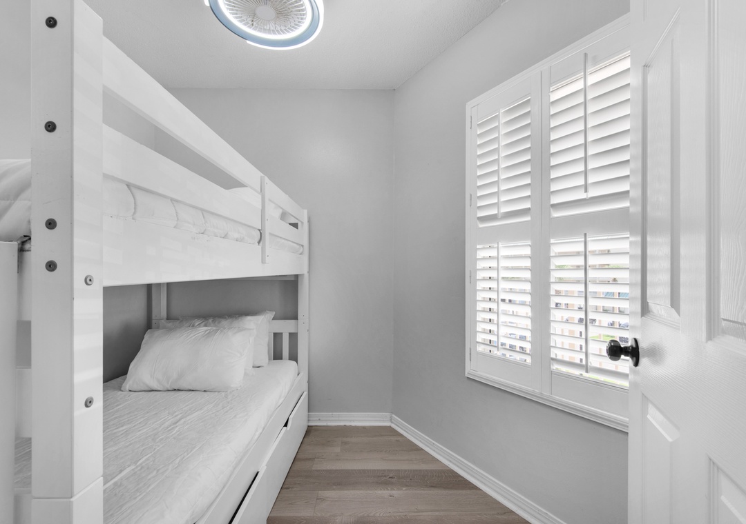 Maravilla 1309 is a beautiful 3BR/2BA condo that sleeps 8 comfortably! The main bedroom has a king-size bed, its own flat screen TV, a private bathroom, and sliding glass doors that open to your oversized patio for easy access to your first breath of ocean air as soon as you wake up. Offering a plush king bed and calming decor is a second guest bedroom complete with its own flat screen TV, direct access to a bathroom which is also accessible from the entry hallway. For kids, there is a bunk room that has a twin over twin bunk bed.
