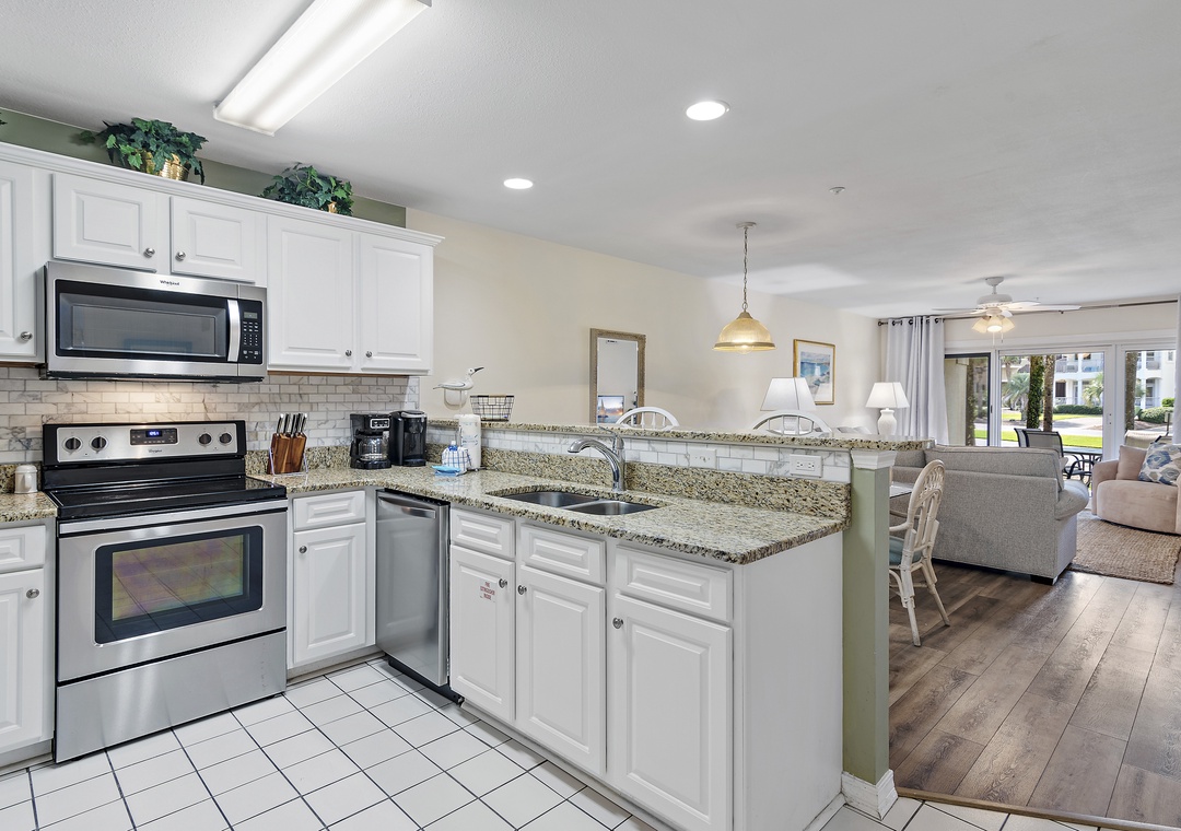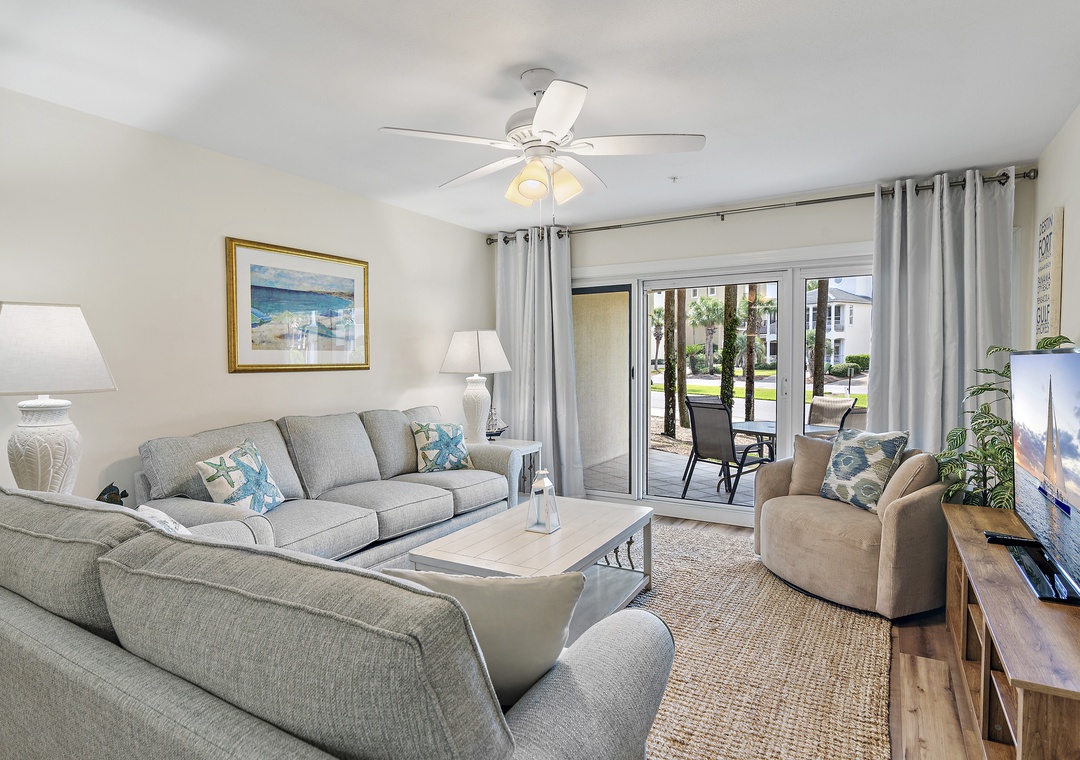 Maravilla 3102 is a beautiful 2BR/2BA condo just a short walk from gorgeous Miramar Beach! Maravilla is located in a gated resort with two pools, hot tub, tennis courts, basketball half-court, fitness room, club house, covered parking, bike racks, and shuffleboard. This condo has lovely features including stainless steel appliances and granite countertops in an updated kitchen, and a private, ground floor patio. There is a king bed in the master bedroom, a twin over full bunk + twin trundle in the guest room, and a sleeper sofa in the living room, sleeping a total of 6 guests comfortably. With Private Beach access just across the street and TWO on-site pools to choose from, come see why Maravilla 3102 will be your family’s favorite for years to come!
