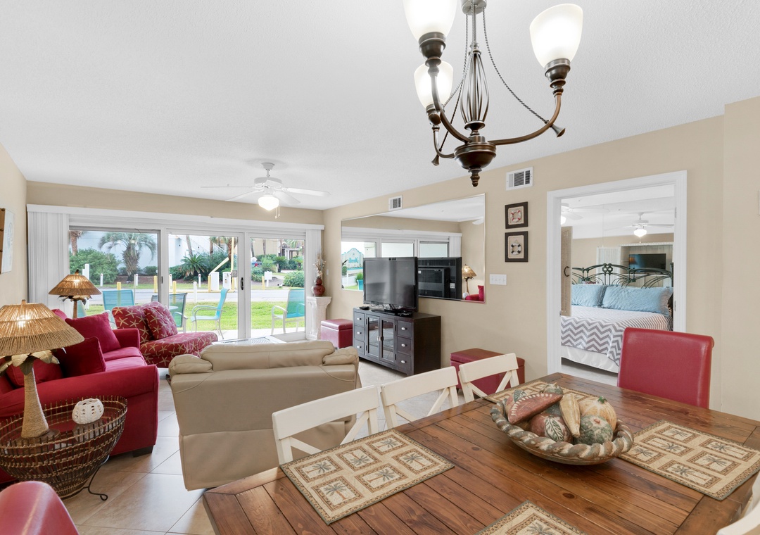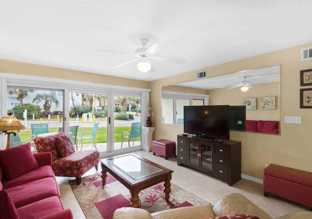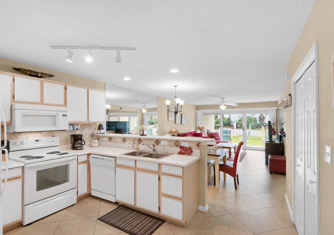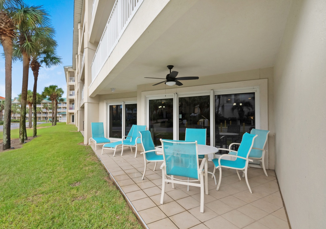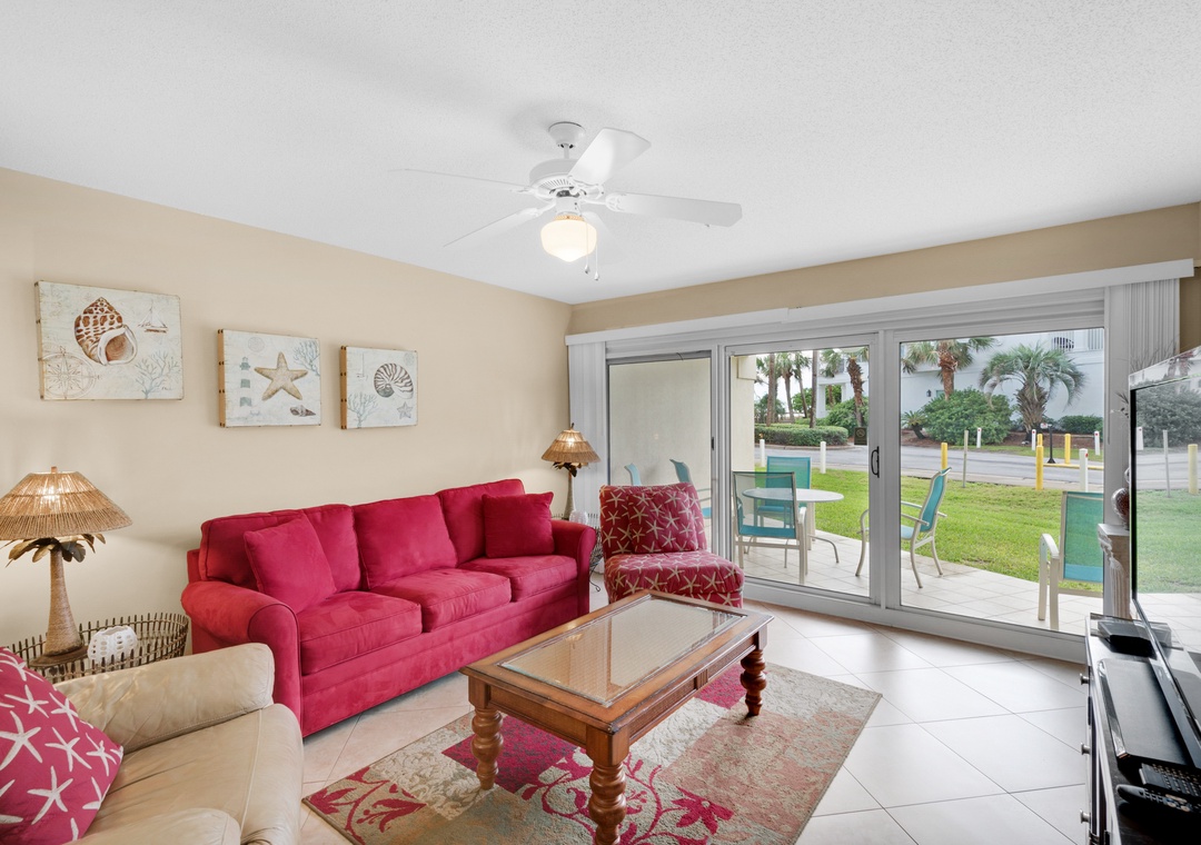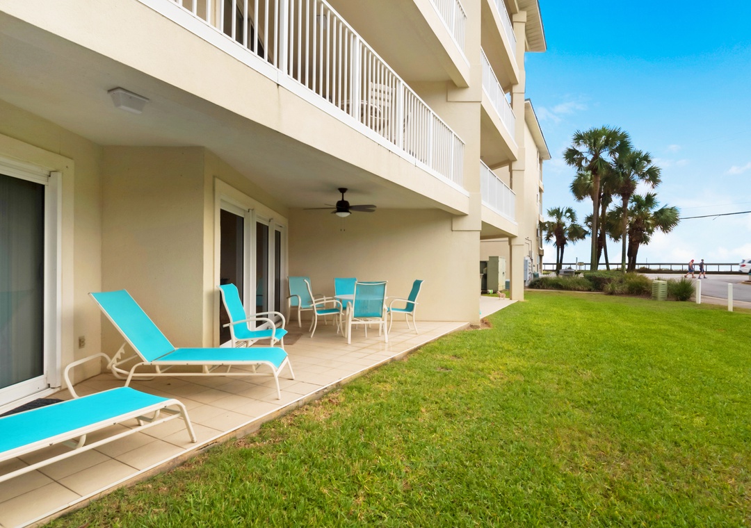 Welcome to Maravilla 3107. This convenient 2BR, 2BA condo is just across the street from beautiful Miramar Beach. An extra-convenient ground floor condo with large patio overlooks a grassy area. It is great for families with children, seniors or anyone who doesn't care to climb steps or wait for the elevator. With a king bed in the master, a full sized bed in the second bedroom, and a pull out sofa in the living room, the beach condo sleeps 6 comfortably. Enjoy the added benefit of a washer/dryer in the condo. The private beach gate is just steps from your patio door. Enjoy lasting vacation memories at Maravilla 3107.