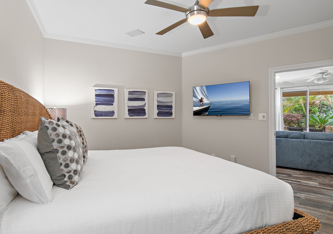 Thank you for your great review, Lee! We're pleased to hear that your group of 14 found the space comfortable and enjoyed the amenities, including the pool and golf cart. We're sorry to learn about the TV issue downstairs but glad it didn't affect your stay too much. We look forward to welcoming you back for your next visit!Real Joy staff