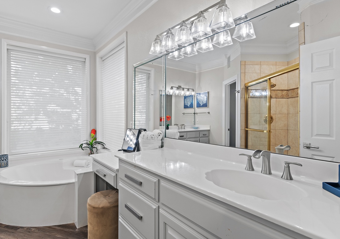 Celeste, thank you for your 5-star review! We're pleased to hear that you found the home beautiful and spacious enough for everyone. It's great that you appreciated the convenience of each bedroom having its own bathroom, along with the multiple living spaces. We hope to welcome you back to RealJoy for another enjoyable stay!Real Joy staff