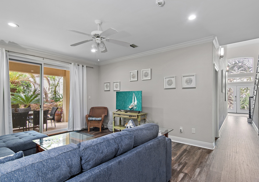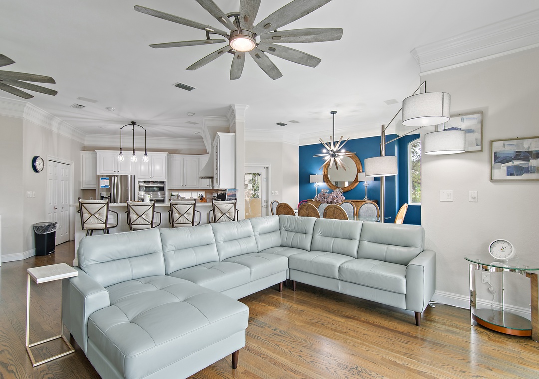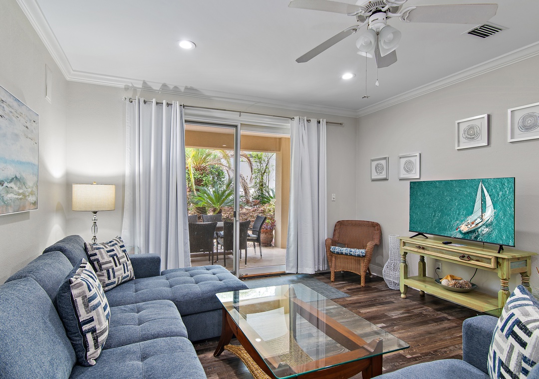 We typically stay on the beach and was doubtful about staying here due to the beach not being right outside the back door. Wasn’t even an issue, with the beach less than a minute, literally because I counted, it was perfect. You can drive the cart to the many different restaurants and stores. The place itself was magnificent! everyone had plenty of room plus each room has its own bathroom!! Don’t forget the clubhouse less than 30 seconds away in the gated community. Huge pool, hot tub and gym. There’s just so much I can say about this place that I can’t cover everything.