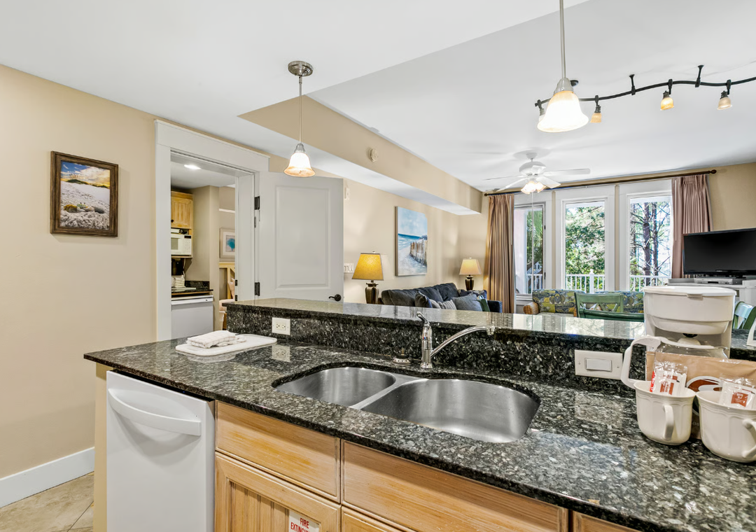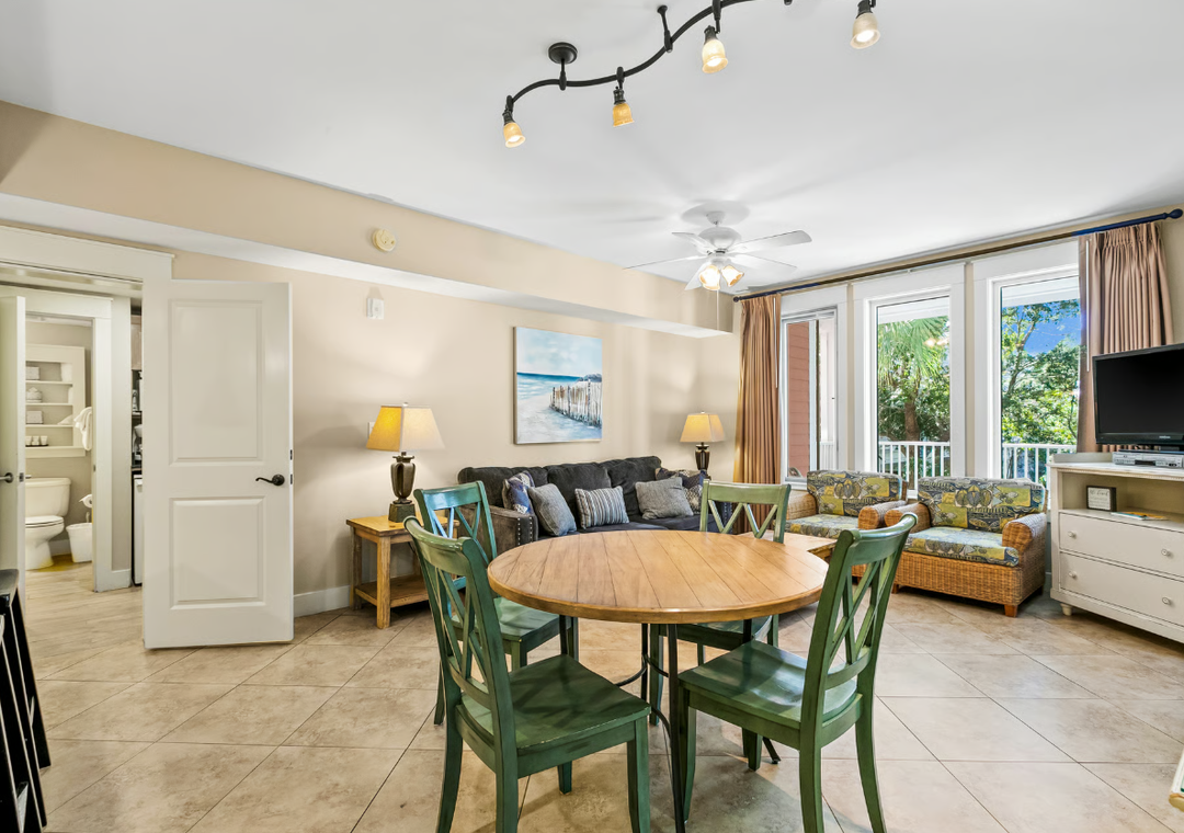 Experience your beautifully updated one-bedroom unit at Market Street Inn 232. This inviting corner condo features a spacious wraparound second-floor patio where you and your guests can relax under a lush canopy of trees and enjoy the vibrant natural surroundings—perfect for a peaceful morning coffee. Prepare delicious meals in the well-equipped kitchen, complete with three barstools and a dining table for four. Step outside to take advantage of the community grill and pool area, ideal for unwinding after a day of adventure. The master suite offers a comfortable king bed and a private en-suite bathroom, while a queen sleeper sofa in the living room provides additional sleeping space, accommodating up to four guests with ease. Located just steps from the Village of Baytowne Wharf, you’ll be within close reach of dining, shopping, and family-friendly entertainment. Create unforgettable vacation memories at Market Street Inn 232!