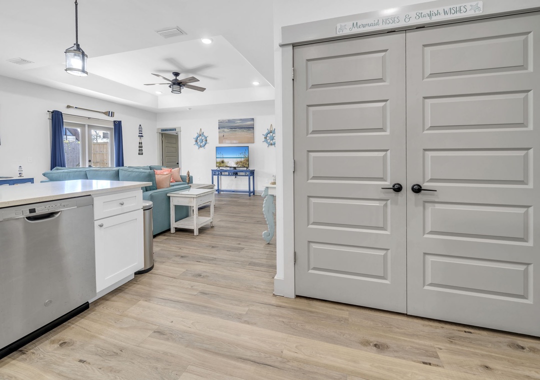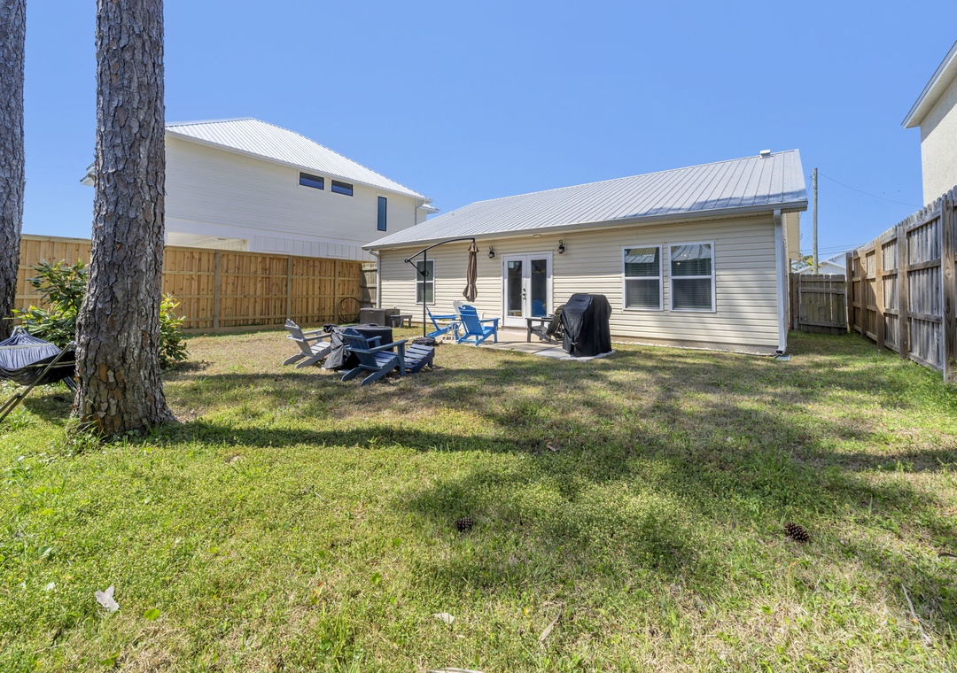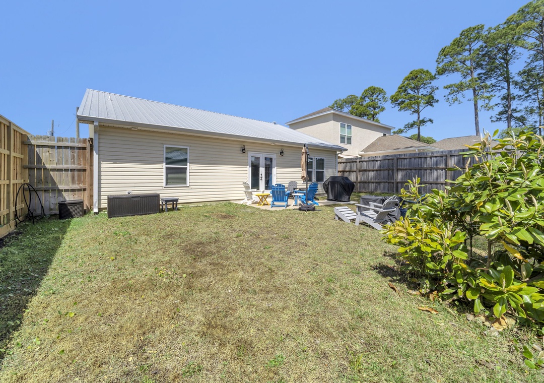 Welcome to Mermaid Manor, your perfect coastal escape tucked away in a peaceful, family-friendly neighborhood on the desirable west end of Panama City Beach. This inviting 3-bedroom, 2-bath home offers plenty of space to relax, with a large driveway for easy parking and a comfortable, laid-back atmosphere throughout. Start your mornings on the spacious back porch, ideal for sipping coffee and enjoying the quiet surroundings, then head inside to a fully equipped kitchen ready for everything from quick breakfasts to home-cooked dinners. The home features a king master suite, a king guest room, and a fun bunk room with two twin-over-twin bunks—perfect for kids—plus a sleeper sofa in the living room, allowing up to 8 guests to stay comfortably. Step outside to a fully fenced backyard, great for pets, playtime, or outdoor gatherings, and take advantage of the bikes provided for exploring the area. Mermaid Manor is the perfect place to relax, unwind, and make lasting beach memories.