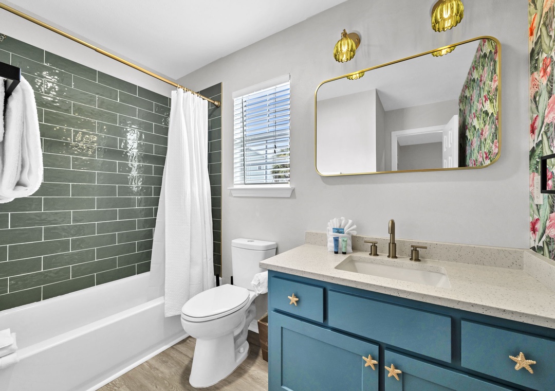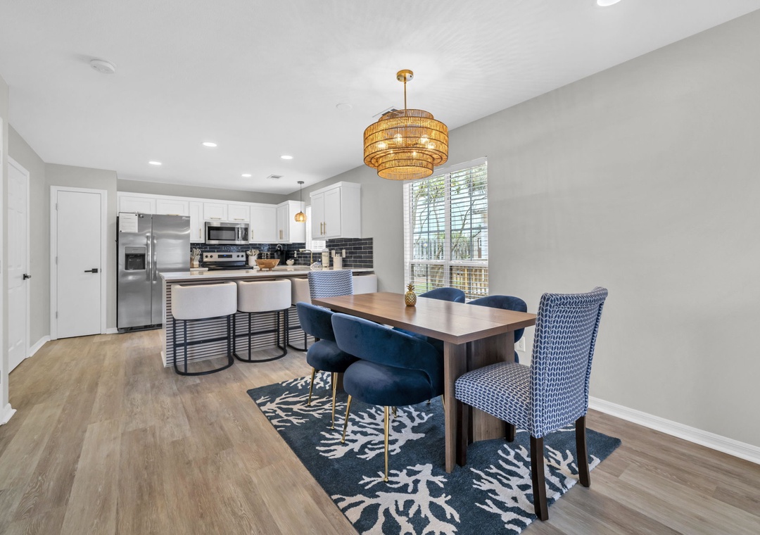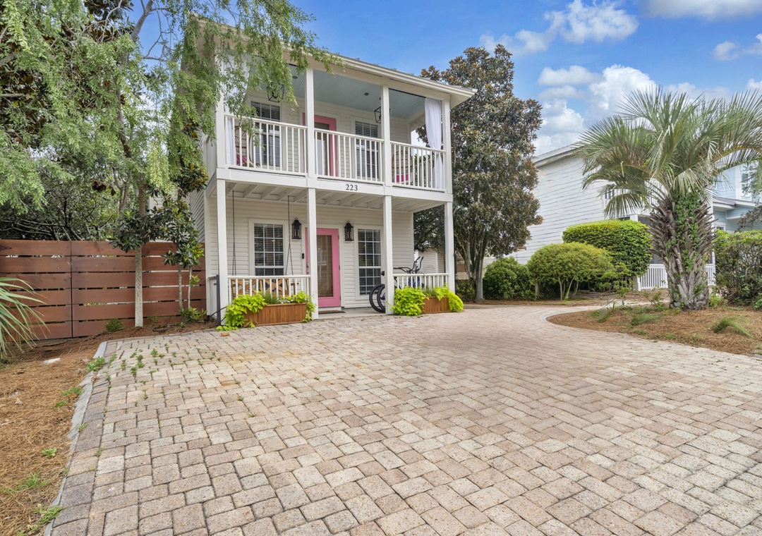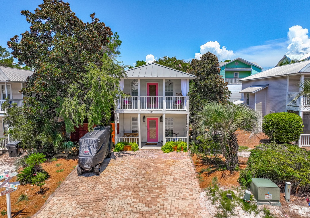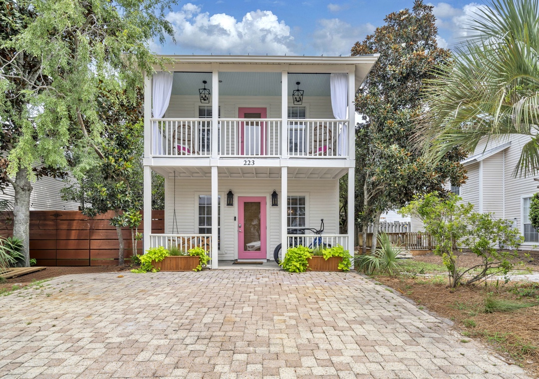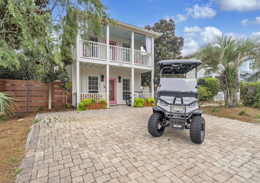 Just a short stroll from 30A, the home is within walking distance to popular spots such as Mimmo’s Italian, Coffee 30A, Ice Cream Shoppe at 30A, Real and Raw Organic Market, and 30A Thai Cuisine. Beach access is a quick 3-minute golf cart ride, and complimentary beach gear—four chairs, an umbrella, and toys—are provided. Guests will love snorkeling in the clear emerald waters or relaxing on the white sands beach!