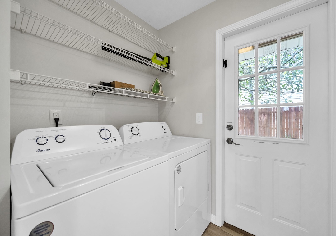 Level 1: Living room, kitchen, full bathroom, laundry room with large-capacity washer and dryer.